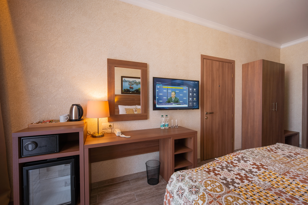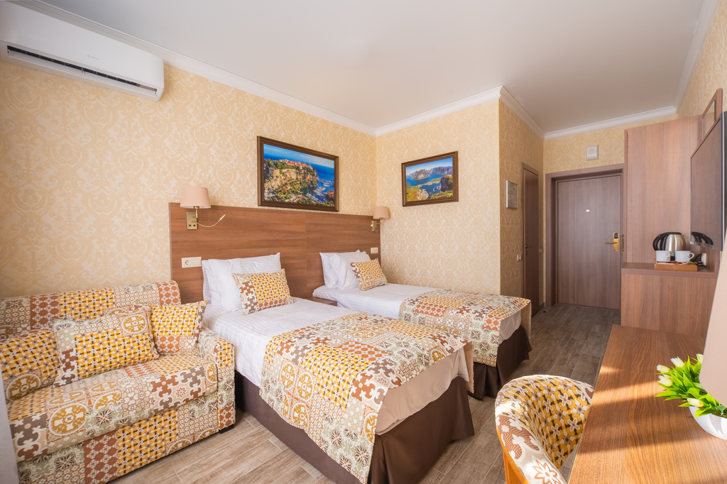 Курортный отель «Капкана Бэй-Плаза 4*» располагается рядом с центральной прогулочной аллеей «Паралия» в курортном поселке Витязево в шаговой доступности от моря. Здание отеля оформлено в современном стиле. Изюминка отеля – скай-бар под открытым небом с панорамным видом на Черное море, где царит атмосфера романтики и отдыха. Гостям предлагаются освежающий бассейн и разнообразные водные развлечения. Ресторан порадует гурманов как традиционными, так и интернациональными блюдами из местных продуктов. Рядом с отелем множество магазинчиков, детских аттракционов, сувенирных и фруктовых лавок, пляж в 10-15 минутах.