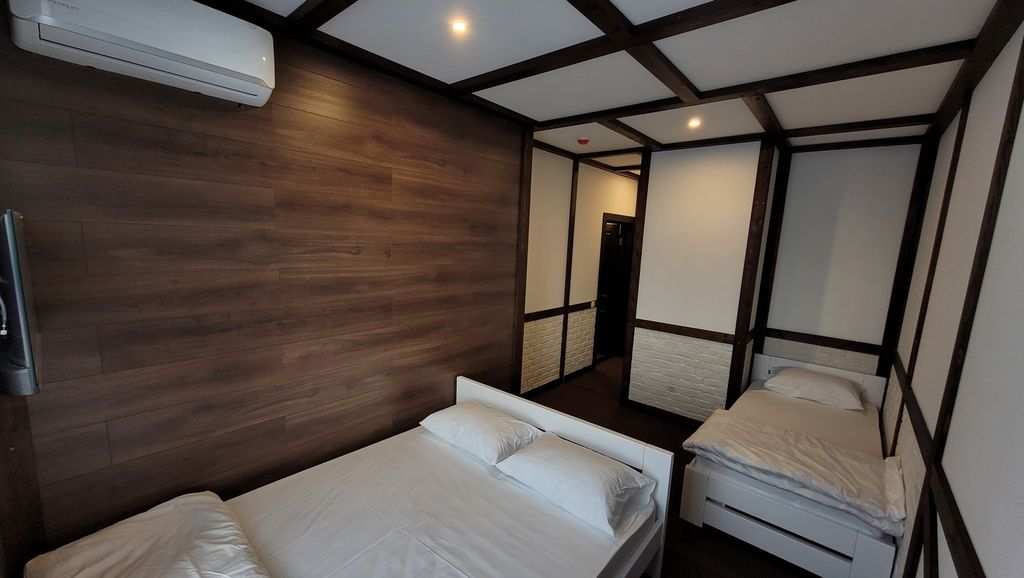В гостинице вас ждёт особенная атмосфера, созданная благодаря тёплой цветовой гамме. Деревянные элементы и мягкие тона создают ощущение гармонии и уюта, делая ваше пребывание по-настоящему комфортным. В номерах удобные кровати, телевизор, санузел с душевой.