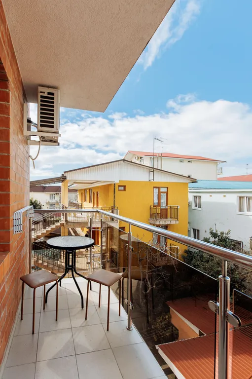 Подходит для семьи с ребенком Однокомнатный номер, созданный для комфортного размещения трех гостей. Индивидуальный балкон В номерах данной категории имеется балкон с уличной мебелью, на котором можно насладиться морским воздухом, выпить кофе или поработать за компьютером. Большая кровать Номер оснащен двуспальной и односпальной кроватями, которые обеспечат вам отличный сон и отдых после активного дня. Также в номере предусмотрены кондиционер, холодильник, ЖК-телевизор и собственный санузел с душем. Для вашего комфорта Wi-Fi доступен гостям без дополнительной оплаты. По запросу предоставим утюг, гладильную доску.