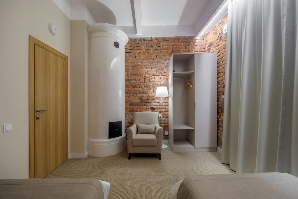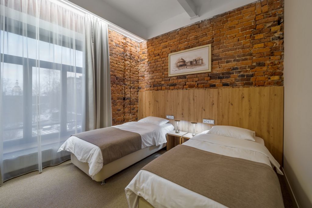 «Дом Тат» — это современный отель в центре Выборга на 21 номер с дизайнерским интерьером. Это очень атмосферное место, передающее дух и романтику старого Выборга. Отель расположен в здании, построенном в XIX веке в стиле неоклассицизма. Это дом с богатой историей, включённый в число объектов культурного наследия. Он находится на пересечении Крепостной и Красноармейской улиц, на так называемом «перекрёстке пяти балконов», два из которых принадлежат отелю. В то же время, все номера выполнены в современном, лаконичном стиле, в них есть все удобства для комфортного отдыха. Отель прошёл классификацию по стандарту 3 звезды, однако, если оценивать его по качеству оформления и оснащения комнат, то можно смело добавить ещё одну звезду. В комнатах установлены либо двуспальные, либо раздельные кровати с ортопедическими матрасами. Во всех номерах есть ванные комнаты с душевыми и туалетами. Изюминка двух номеров люкс — те самые балконы, выходящие на знаменитый «перекрёсток пяти балконов». Из четыр