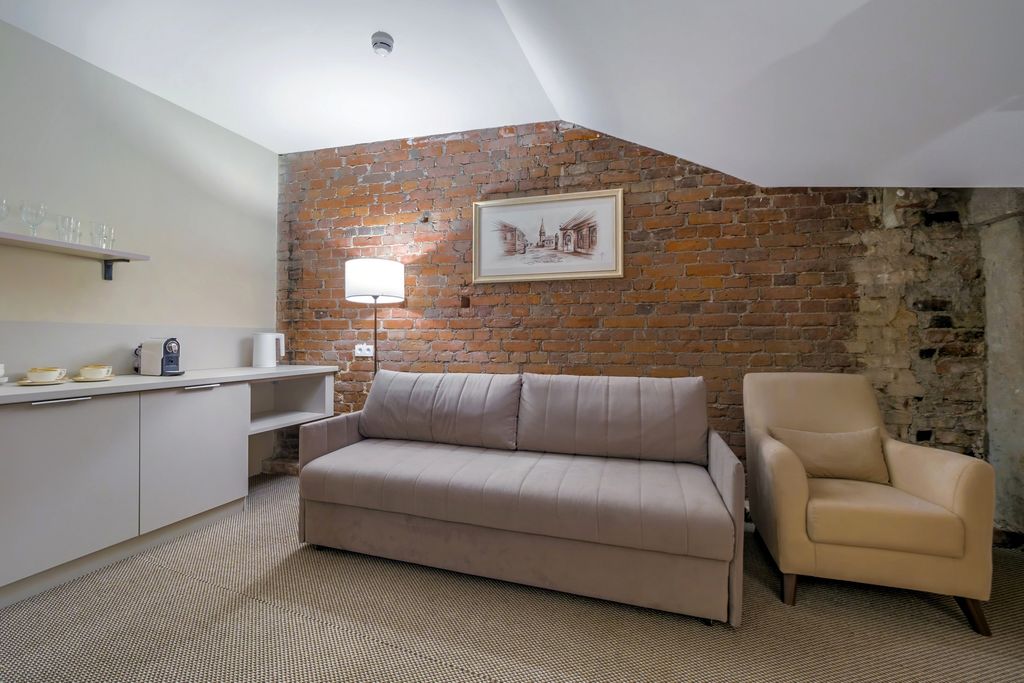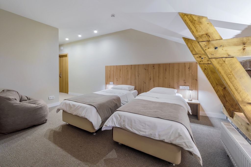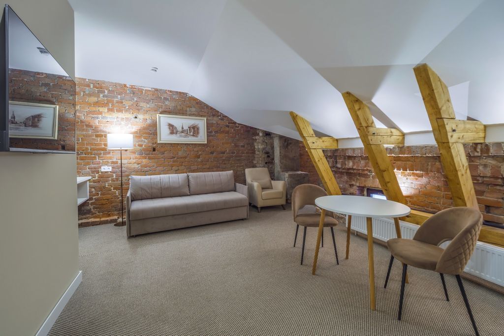 «Дом Тат» — это современный отель в центре Выборга на 21 номер с дизайнерским интерьером. Это очень атмосферное место, передающее дух и романтику старого Выборга. Отель расположен в здании, построенном в XIX веке в стиле неоклассицизма. Это дом с богатой историей, включённый в число объектов культурного наследия. Он находится на пересечении Крепостной и Красноармейской улиц, на так называемом «перекрёстке пяти балконов», два из которых принадлежат отелю. В то же время, все номера выполнены в современном, лаконичном стиле, в них есть все удобства для комфортного отдыха. Отель прошёл классификацию по стандарту 3 звезды, однако, если оценивать его по качеству оформления и оснащения комнат, то можно смело добавить ещё одну звезду. В комнатах установлены либо двуспальные, либо раздельные кровати с ортопедическими матрасами. Во всех номерах есть ванные комнаты с душевыми и туалетами. Изюминка двух номеров люкс — те самые балконы, выходящие на знаменитый «перекрёсток пяти балконов». Из четыр