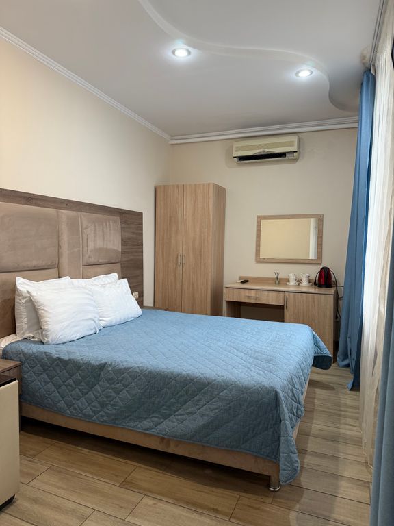Отель расположен на первой линии, в 30 метрах от набережной и пляжей. Всего в отеле 40 номеров разной категории, с различными видовыми характёристиками, от стандартных номеров до номеров категории люкс. На территории отеля работает большой подогреваемый бассейн ( с мая по сентябрь), летний бар у бассейна и кафе.