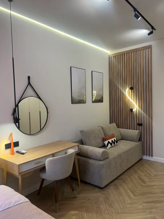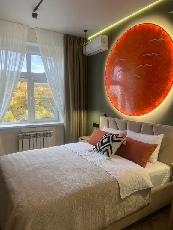 Центр Курортной Зоны. Максимально близко к Водо- и Грязелечебницам и к входу в Лечебный парк с минеральной водой. Остановитесь в чистой и уютной квартире с видом на тихую лесную зону и гору Бештау, где приятно будет провести время и восстановить силы после незабываемых экскурсий по Кавказу. Для этого в квартире выполнено индивидуальное отопление с тёплыми полами — для комфортного пребывания в холодное время года и установлены электрические роллеты на панорамных окнах — для защиты от палящих лучей солнца в жаркие летние дни. Также мы укомплектовали квартиру всей необходимой мебелью и техникой. # Тихие инверторные кондиционеры (Энерголюкс) # Телевизоры 55″ с Билай-ТВ # Кровать с ортопедическим матрасом 160*200 см и качественными постельными принадлежностями + раскладной диван с топпером 140*200 см # На кухне мы установили современную мебель с тихим встроенным холодильником, микроволновкой, эл. чайником и посудомоечной машиной. # Санузел укомплектовали тропическим и гигиеническим