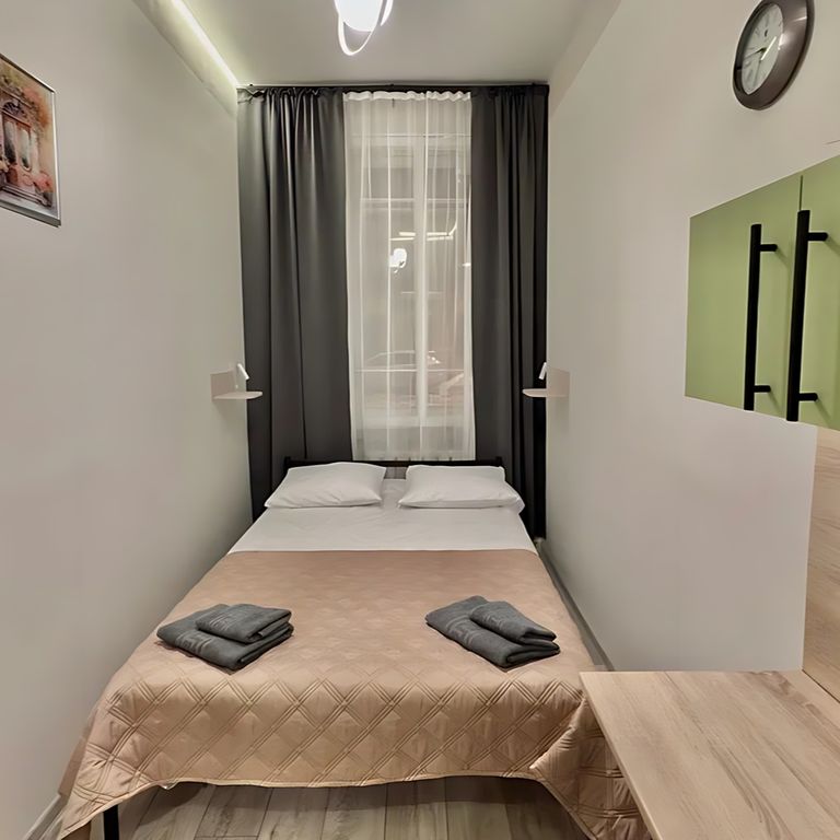 В каждом номере присутствует: Питьевая вода Мини-кухня Комплект посуды Электрочайник Микроволновая печь Телевизор Косметические принадлежности Фен Вешалки для одежды Гладильные принадлежности Шторы black out
