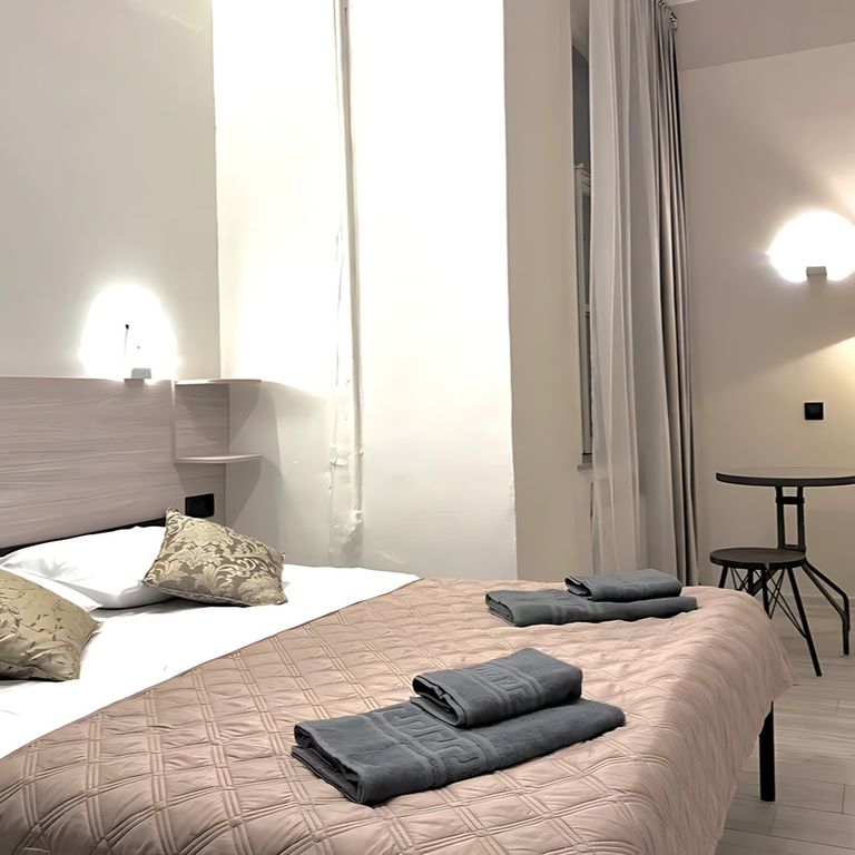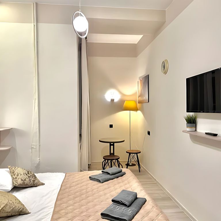 В каждом номере присутствует: Питьевая вода Мини-кухня Комплект посуды Электрочайник Микроволновая печь Телевизор Косметические принадлежности Фен Вешалки для одежды Гладильные принадлежности Шторы black out