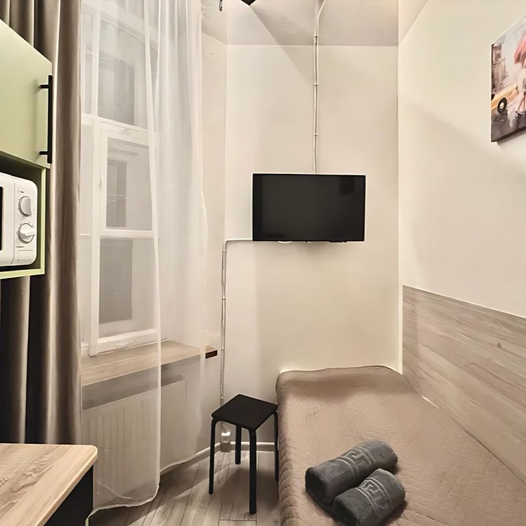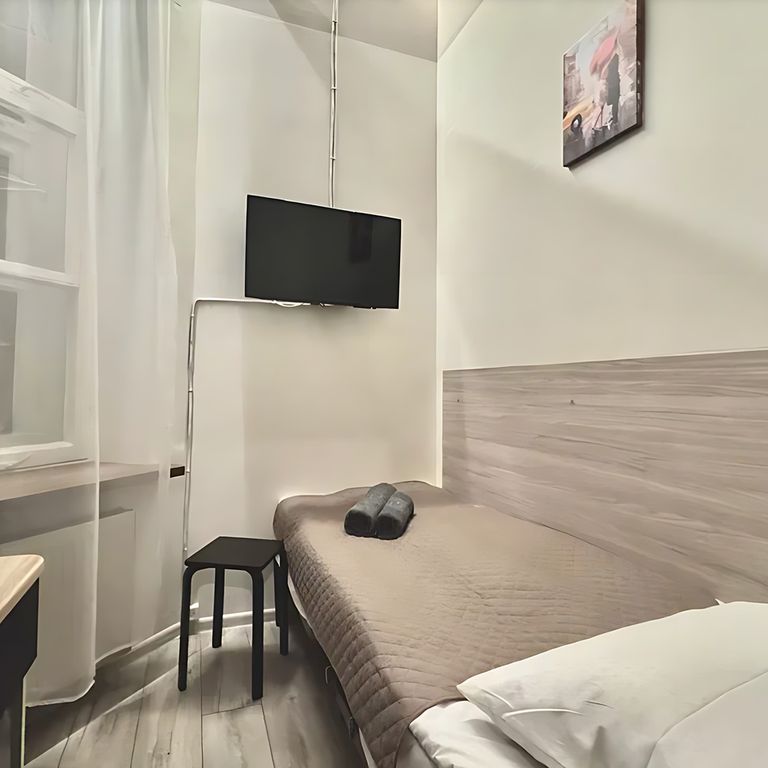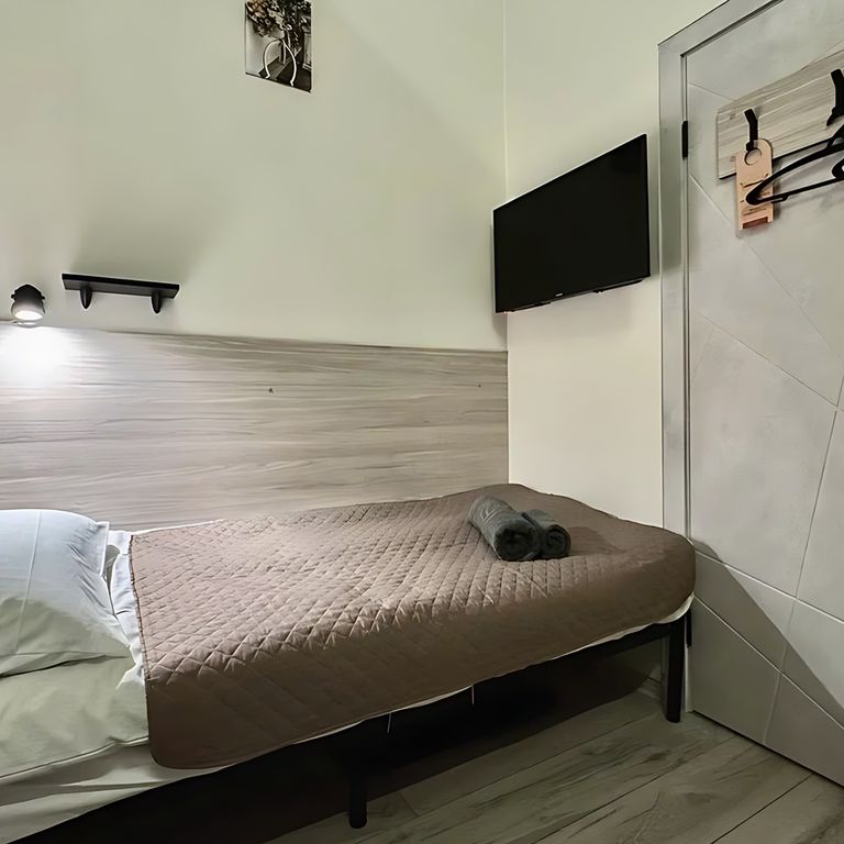 В каждом номере присутствует: Питьевая вода Мини-кухня Комплект посуды Электрочайник Микроволновая печь Телевизор Косметические принадлежности Фен Вешалки для одежды Гладильные принадлежности Шторы black out