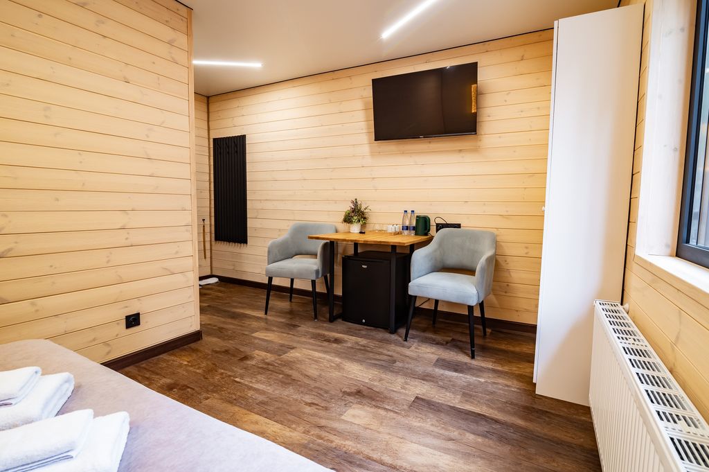 Гостиница Гринвальд 1474 расположена в селе Архыз. Номерной фонд 10 номеров, из которых 4 номера двухместных, 4 номера четырех местных, 2 номера люкс двух комнатных четырех местных. Гостиница запущена в 2025 году, абсолютно новая! Здесь созданы все условия для комфортного проживания — есть телевизор, фен, чай/кофе в номерах, отопление, терраса, мини-бар, в каждом номере. Вы можете выбрать любой из 10 доступных номеров. На территории имеется зона барбекю с индивидуальными мангалами. В гостинице есть помещение кафе с кухонной зоной. У каждого гостя будет доступ в интернет, вы сможете выложить фотографии, отправить файл или позвонить родным по видео. Планируйте поездку так, чтобы точно заселиться в гостиницу. Заезд здесь начинается с 14:00, выехать нужно до 11:00. Даже если вы прибудете поздно ночью, вас встретят на круглосуточной стойке регистрации и помогут с размещением. Если вы на машине, можете оставить её на парковке. К вашим услугам: обслуживание номеров.