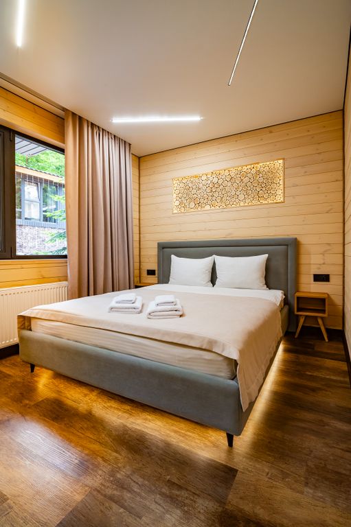 Гостиница Гринвальд 1474 расположена в селе Архыз. Номерной фонд 10 номеров, из которых 4 номера двухместных, 4 номера четырех местных, 2 номера люкс двух комнатных четырех местных. Гостиница запущена в 2025 году, абсолютно новая! Здесь созданы все условия для комфортного проживания — есть телевизор, фен, чай/кофе в номерах, отопление, терраса, мини-бар, в каждом номере. Вы можете выбрать любой из 10 доступных номеров. На территории имеется зона барбекю с индивидуальными мангалами. В гостинице есть помещение кафе с кухонной зоной. У каждого гостя будет доступ в интернет, вы сможете выложить фотографии, отправить файл или позвонить родным по видео. Планируйте поездку так, чтобы точно заселиться в гостиницу. Заезд здесь начинается с 14:00, выехать нужно до 11:00. Даже если вы прибудете поздно ночью, вас встретят на круглосуточной стойке регистрации и помогут с размещением. Если вы на машине, можете оставить её на парковке. К вашим услугам: обслуживание номеров.