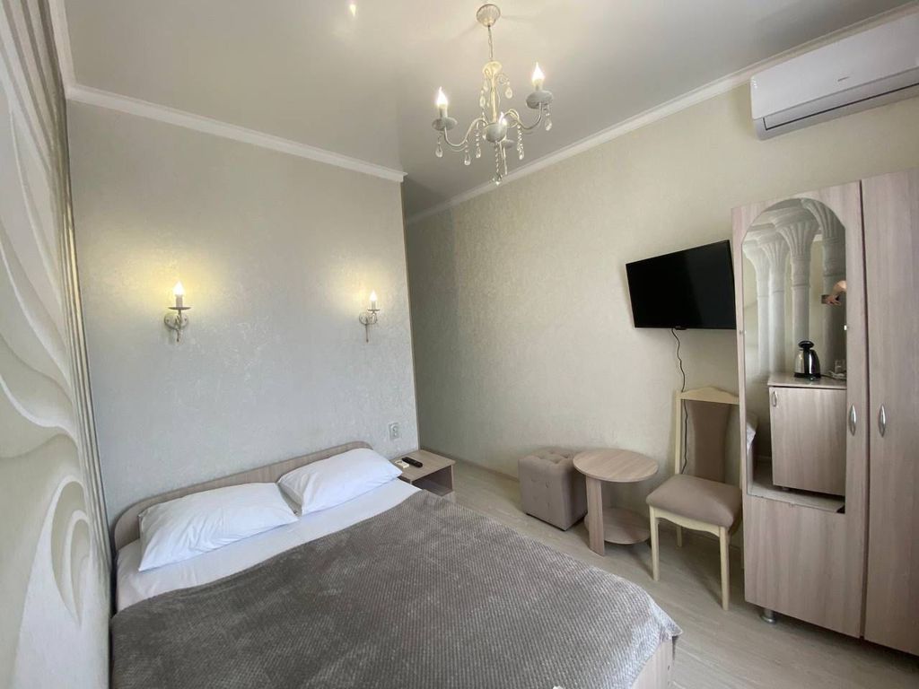 Гостевой дом «Ромашка» Гостевой дом «Ромашка» — это уютное и спокойное место для комфортного отдыха в тёплой курортной атмосфере. Территория утопает в зелени: пальмы, декоративные растения и ухоженный двор создают ощущение уюта и уединения уже с первых минут пребывания. Здание выполнено в светлых, солнечных тонах, с аккуратными балконами и галереями, что придаёт гостевому дому приятный и ухоженный внешний вид. Закрытая территория обеспечивает комфорт и безопасность гостей. Во дворе — просторная зона для отдыха, вымощенные дорожки, зелёные насаждения и тихие уголки, где приятно провести время днём или вечером. Атмосфера располагает к спокойному отдыху вдали от городского шума. Номера расположены в галерейном корпусе, каждый номер имеет отдельный вход, что особенно удобно для семей и гостей, ценящих личное пространство. Светлые интерьеры, аккуратная мебель и продуманная планировка создают комфортные условия для проживания. Гостевой дом «Ромашка» подойдёт для: семейного отдыха спокойного