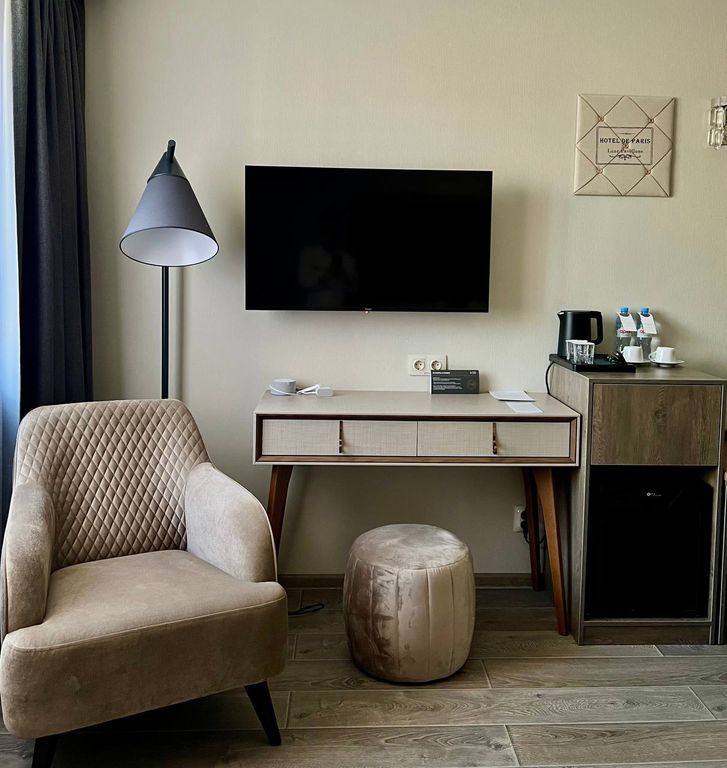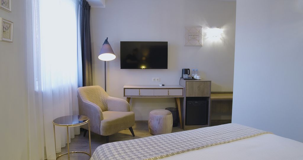 Бутик-отель Де Пари — элегантность и комфорт в сердце Перми! Отель расположен в самом центре деловой и культурной жизни города. В отеле Де Пари вы не просто гость – здесь вы становитесь частью уникальной истории, где каждая деталь подчеркивает ваш статус и безупречный вкус. У нас вы ощутите тишину, уединение и заботу. Четыре звезды отеля Де Пари – это не просто рейтинг, это обещание превосходства. Аромат кофе и теплых круассанов каждое утро дополняет неповторимую атмосферу отеля. Номера в отеле от стандарта до категории люкс, в номерах возможно размещение 1-2 человека, некоторые номера оборудованы диванами, есть возможность установить дополнительное спальное место и детскую кроватку максимальное размещение в номере до 4-человек. Апартаменты оборудованы, обеденной зоной, кухонной зоной, микроволновая печь, инверторная печь, посудомоечная машина, все необходимое для приготовления еды. Чайные станции, холодильники, в номерах повышенной категории капсульные кофе машины Nespresso, сейфы,