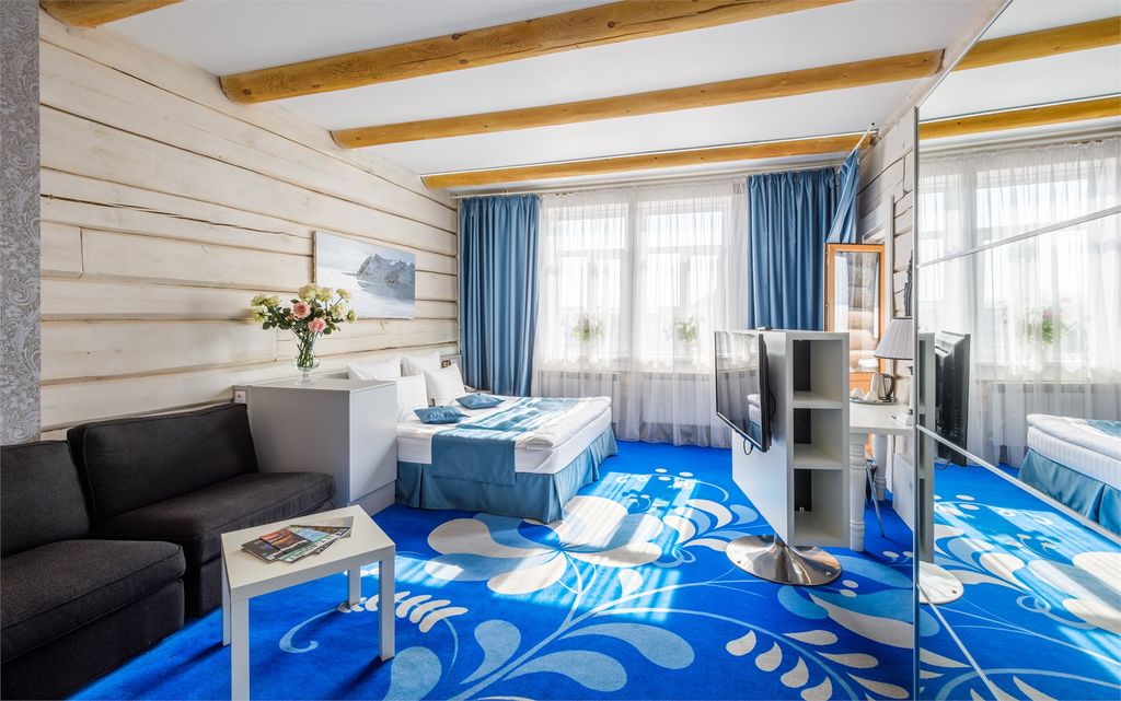 Отель «Купеческий Дворъ» – это уникальная историческая реконструкция сибирской усадьбы, владельцем которой был иркутский адвокат, частный поверенный Н.Д. Красильников. Этот дом служил гостиницей для богатых купцов, приезжавших в город по делам коммерции. Отель расположен в историческом центре города Иркутска. В шаговой доступности находятся Музыкальный и Драматический театры, огромный торговый комплекс с широким выбором товаров, множество кафе и ресторанов. Небольшой номерной фонд в 14 номеров позволяют уделять максимальное внимание каждому гостю, в отеле нет места шуму и суете. Дизайн отеля выполнен в деревянном стиле с использованием самых современных технологий. Вы можете выбрать из трех категорий номеров: Стандарт, Джуниор сюит и Джуниор сюит с балконом. В каждом номере кровать King-size или 2 полутораспальных кровати, зона отдыха, рабочая зона, ванная комната укомплектована современной сантехникой, махровым халатом и тапочками, а также набором косметических средств класса «Люкс».