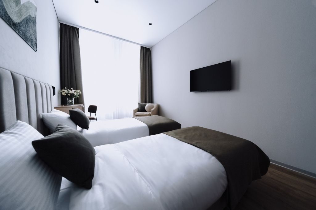 Отель «Премьер» — это современный отель бизнес-класса, расположенный в самом центре Красноярска, в районе, где гармонично сочетаются деловая активность и историческая атмосфера. Мы предлагаем своим гостям уникальное сочетание уюта и спокойствия. Несмотря на близость к динамичной городской жизни, отель находится в тихом и уединённом уголке, где звуки мегаполиса остаются вдали. Это идеальное место для тех, кто хочет насладиться тишиной и расслабиться после насыщенного дня, исследуя городские достопримечательности. Удобное расположение обеспечивает легкий доступ к транспортным маршрутам и развитой инфраструктуре, что позволяет эффективно организовывать деловые встречи и наслаждаться досугом. Гости отеля могут насладиться архитектурой старинного центра, прогуливаясь по живописным улочкам, или отправиться на набережную реки Енисей, которая находится в шаговой доступности. Рядом расположена театральная площадь с известными «поющими» фонтанами. Каждый номер оборудован комфортной кроватью с а