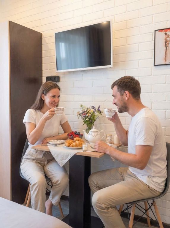 Бан-ин Аллей — уютные апартаменты с кухней рядом с метро Бунинская аллея Современные студии в тихом районе Москвы — идеальный вариант для комфортного проживания, командировок и коротких поездок. Удобная транспортная доступность и всё необходимое для жизни уже внутри Для кого мы созданы Командированные — тишина, надёжный интернет, официальные отчётные документы. Пары и индивидуальные гости — приватность и уютный интерьер для комфортного отдыха. Временно проживающие — от одной ночи до нескольких недель: идеальный вариант на время ремонта, переезда или работы в Москве. Что есть в каждой студии Мини-кухня: плита, холодильник, микроволновка, посуда. Собственная ванная комната с душем. Техника и удобства: телевизор, фен, утюг, гладильная доска, стиральная машина Бесплатный Wi-Fi для работы и отдыха. Парковка во дворе — бесплатно для гостей. Наши преимущества Круглосуточное заселение — приезжайте в удобное для вас время. Удобное