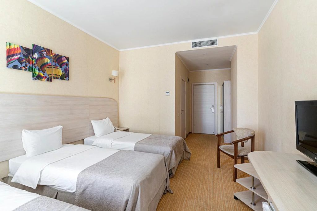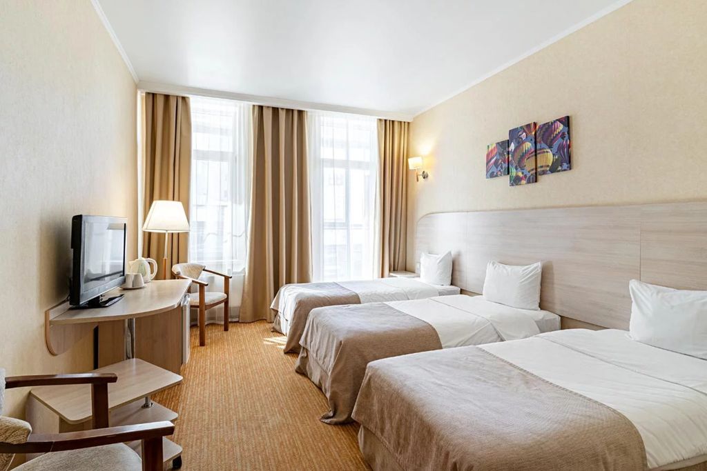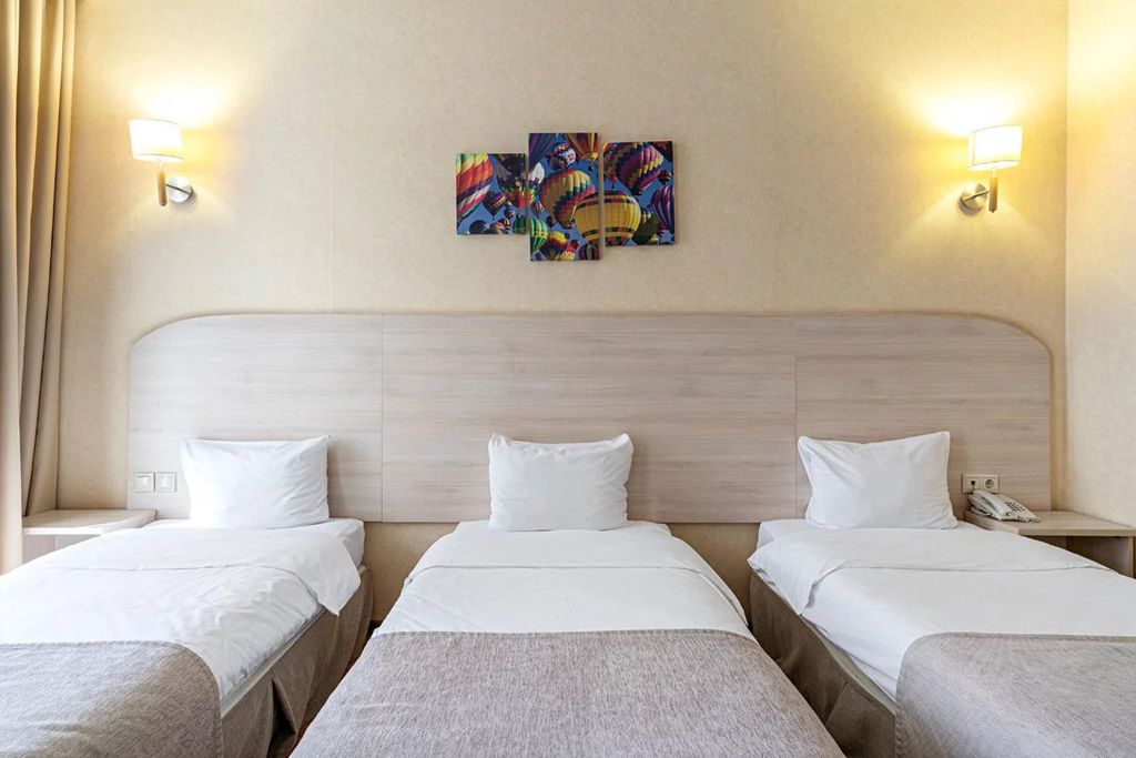 Современный трехзвездочный отель, расположенный в юго-восточной части города Казань. Отель предлагает своим гостям 92 номера различной категории - "Стандарт", "Улучшенный номер с балконом", "Семейный двухкомнатный номер", "Полулюкс" и "Люкс". Номера отеля располагаются с 5 по 12 этажи. Из номеров открывается панорамный вид на Проспект Победы. Площадь номеров составляет от 21 до 65 кв.м. Номера оснащены всем необходимым для комфортного проживания. Расположение: Расположение отеля является одним из его преимуществ. Удобная транспортная доступность позволяет гостям легко добраться до ключевых достопримечательностей города, деловых центров и развлекательных заведений. Близость к основным магистралям обеспечивает быстрый доступ к аэропорту и железнодорожному вокзалу, что делает отель привлекательным как для туристов, так и для бизнес-путешественников. - в 20-ти минутах от аэропорта и в трёх минутах ходьбы от станции метро «Проспект Победы»;