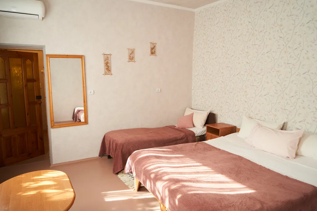 Уютный домик со своим двориком под ключ, расположен рядом с морем. Это идеальный вариант для небольшой семьи с двумя детьми. Домик включает 2 смежные комнаты, кухню с плитой, набором посуды и микроволновкой, санузел, собственное отопление, а также уютный зелёный дворик с обеденным столиком. Среди удобств — кондиционер, Wi-Fi, телевизор, стиральная машина, парковочное место (прямо рядом с домиком) и мангал. Во дворике установлено видеонаблюдение, обеспечивающее дополнительное спокойствие и безопасность. Расположение: до моря и одного из лучших в городе песчаных пляжей, «Жемчужного», всего 12 минут пешком (мы засекали!). В 10 минутах — Крымский рынок, супермаркеты (до ближайшего всего 3 минуты пешком), магазины и кафе. Домик находится в тихом и уютном частном секторе.