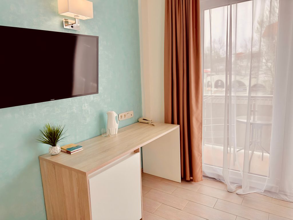 Приглашаем Вас окунуться в беспечный мир отдыха, наполненного ярким солнечным светом, морским бризом и комфортом! Наш отель "Remvi" расположен на первой береговой линии, буквально в 2 минутах от золотого пляжа поселка Витязево. В пешей доступности находится набережная "Паралия" с разнообразными кафе и ресторанами, аттракционами, дельфинарий и аквапарк. Комфортабельные номера в современном стиле, оснащенные балконом, кондиционером, мини-холодильником, телевизором, феном и необходимыми косметическими средствами - это начало Вашего идеального отпуска. На крыше отеля Remvi Вас ждет настоящий оазис: лаунж зона с террасой, для принятия солнечных ванн, два подогреваемых бассейна, детская площадка и Pool-бар с освежающими напитками.