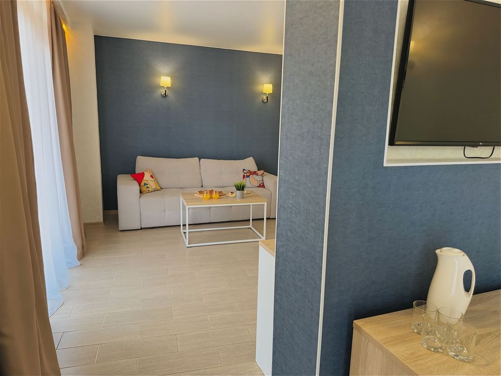 Приглашаем Вас окунуться в беспечный мир отдыха, наполненного ярким солнечным светом, морским бризом и комфортом! Наш отель "Remvi" расположен на первой береговой линии, буквально в 2 минутах от золотого пляжа поселка Витязево. В пешей доступности находится набережная "Паралия" с разнообразными кафе и ресторанами, аттракционами, дельфинарий и аквапарк. Комфортабельные номера в современном стиле, оснащенные балконом, кондиционером, мини-холодильником, телевизором, феном и необходимыми косметическими средствами - это начало Вашего идеального отпуска. На крыше отеля Remvi Вас ждет настоящий оазис: лаунж зона с террасой, для принятия солнечных ванн, два подогреваемых бассейна, детская площадка и Pool-бар с освежающими напитками.