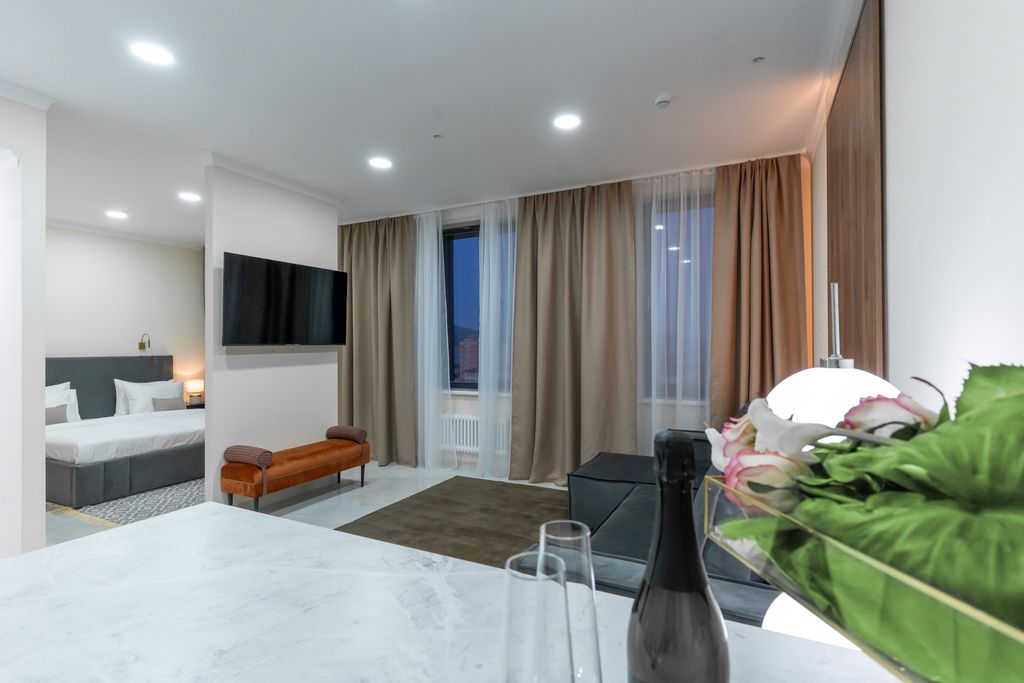 «GRAND MORE BOUTIQUE HOTEL» — это современный стильный отель, расположенный в 308 метрах от Черного моря в Новороссийске. Гостям предлагается несколько категорий номеров, в каждом из которых есть мягкая двуспальная кровать с набором постельного белья, телевизор, интернет и все необходимое для комфортного проживания. Ванная комната порадует вас наличием халата, тапочек и фена. В зависимости от выбранного номера комплектация бытовой техники варьируется. Например, в «двухместном комфорте» предусмотрены посуда, микроволновая печь и электрочайник, чтобы вы всегда могли порадовать себя легким перекусом. Рядом расположено множество досуговых мест и достопримечательностей, включая Морской культурный центр, Новороссийский исторический музей-заповедник, планетарий им. Ю.А. Гагарина и многое другое. Расстояние до вокзала составляет всего 2,1 км, а до ближайшего действующего аэропорта в Сочи — 223,2 км.