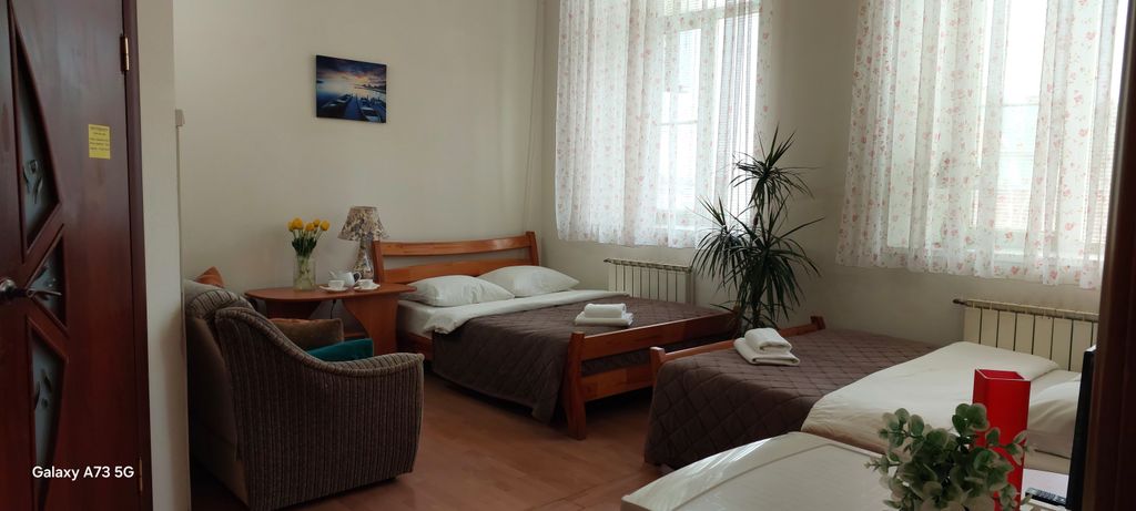 Отель находится на тихой улице, что создает спокойную и уютную атмосферу. Прогулка до набережной Волги занимает всего 3 минуты. Рядом расположены городской пляж, закусочные, кафе, а также остановки общественного транспорта. До центра города менее 3 км.