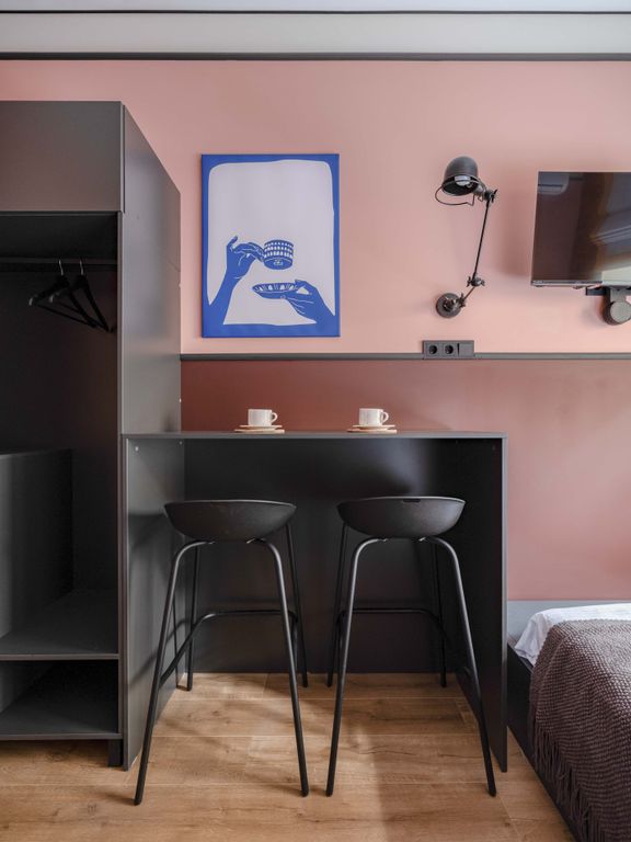 Новый уютный отель на Арбате в тихом переулке с дизайнерской отделкой и стильной мебелью • Номера оснащены технологией умного дома с виртуальным голосовым помощником «Алиса» • «Алиса» управляет светом, шторами, воспроизведением музыки и другими удобствами по голосовой команде • Принимаем иностранных гостей, обеспечивая удобное и комфортное проживание в историческом центре Москвы • Комфортная кровать размера king-size и шторы-блэкаут для полноценного отдыха • Smart TV, бесплатный wi-fi • Стиральная машинка, кулер и сушилка в местах общего доступа • Круглосуточное бесконтактное заселение 24/7 для вашего удобства • Кухонная зона со всеми удобствами и кондиционер • Возможно получение отчетных документов • При заселении требуется депозит 3000 рублей • При бронировании двух номеров предоставляется скидка в размере 20% (обратитесь к менеджеру отеля). Данная акция не будет работать в период с 25.12.25 по 12.01.26. • Проживание в нашем отеле принесёт вам скидку в кафе «Хлеб Насущный» для хорош