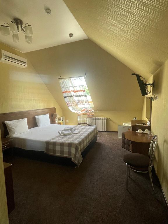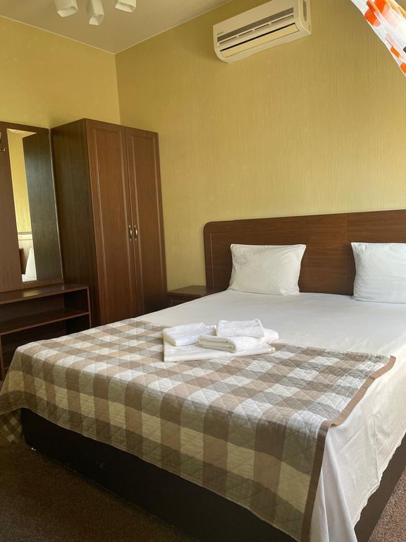 Гостиница «Тёплый Стан». В номерах есть двуспальные кровати, диваны, кондиционер, холодильник, чайник, в каждой комнате телевизор.