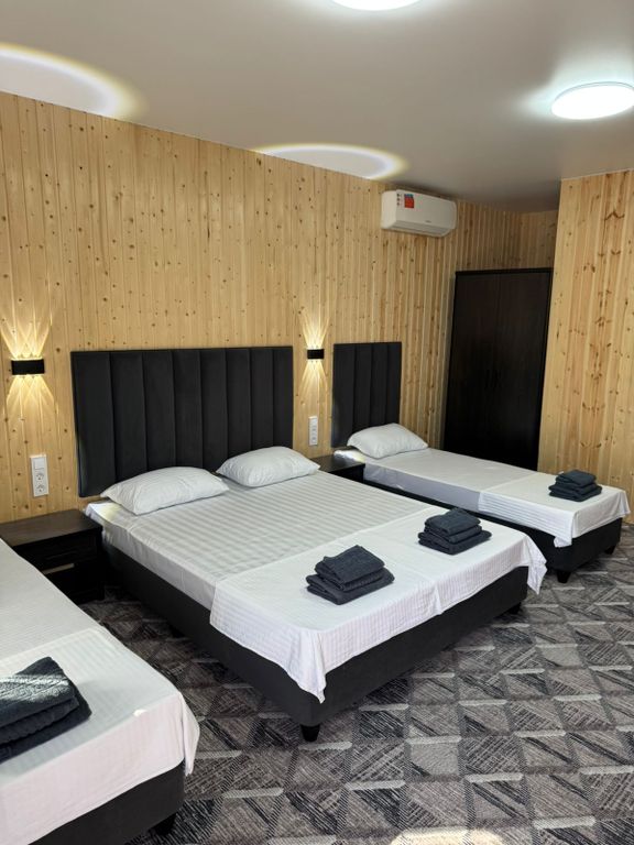 Новый отель в тихом уютно месте не далеко от моря, просторные номера на 4 человека, удобные кровати, душ в номере, интернет, телевизор, холодильник кондиционер, есть зона bbq, парковка, цены ниже конкурентов