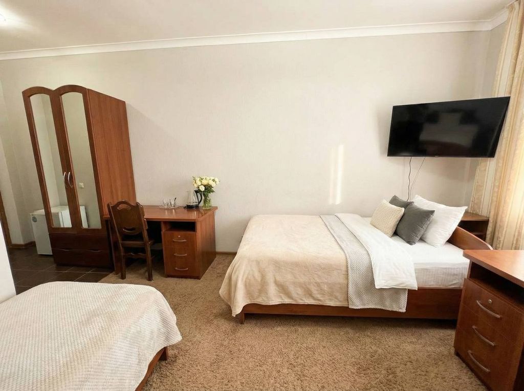 Это уютный отель, расположенный недалеко от центра - рядом есть вся необходимая инфраструктура. Чистые и просторные номера, приветливый персонал. В номерах есть все необходимое для комфортного проживания, включая телевизор, кондиционер, холодильник, мягкую кровать и чистое постельное бельё.