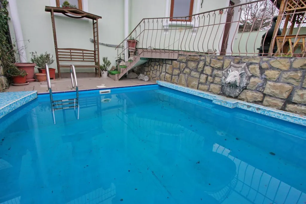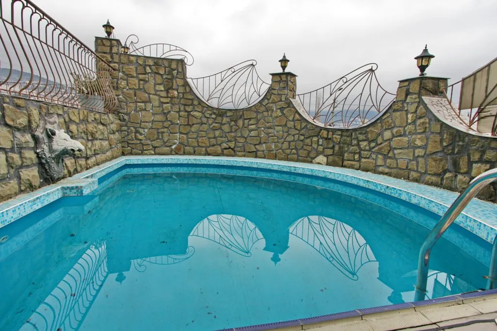 Ceрвис бpoнирования Ялта-Дoм прeдлагaет - Частный небольшой домик, по архитектуре напоминающий старинный мини-замок, расположен в западной части города, на Чайной горке. Комфортабельный уютный трехэтажный особнячок с отличной отделкой внутренних помещений, закрытая придомовая территория, отличная инфраструктура - плавательный бассейн без подогрева, летняя беседка с барбекю, бильярдная, финская сауна..В наличие все условия для полноценного комфортного отдыха. Условия размещения: В обычные не праздничные дни — минимальный срок проживания 5ть суток Размещение На трёх этажах домаразмещены три светлые изолированные спальни - две из них оборудованы балконами, холл-гостиная, кухня, четыре санузла, бильярдная и финская сауна.. В наличие полный набор современной бытовой техники. Практически из любой точки внутреннего пространства домаоткрываются шикарные панорамные виды на город и морское побережье. Инфраструктура Закрытая придомовая территория 4 сотки Бассейн без подогрева Беседка с летне