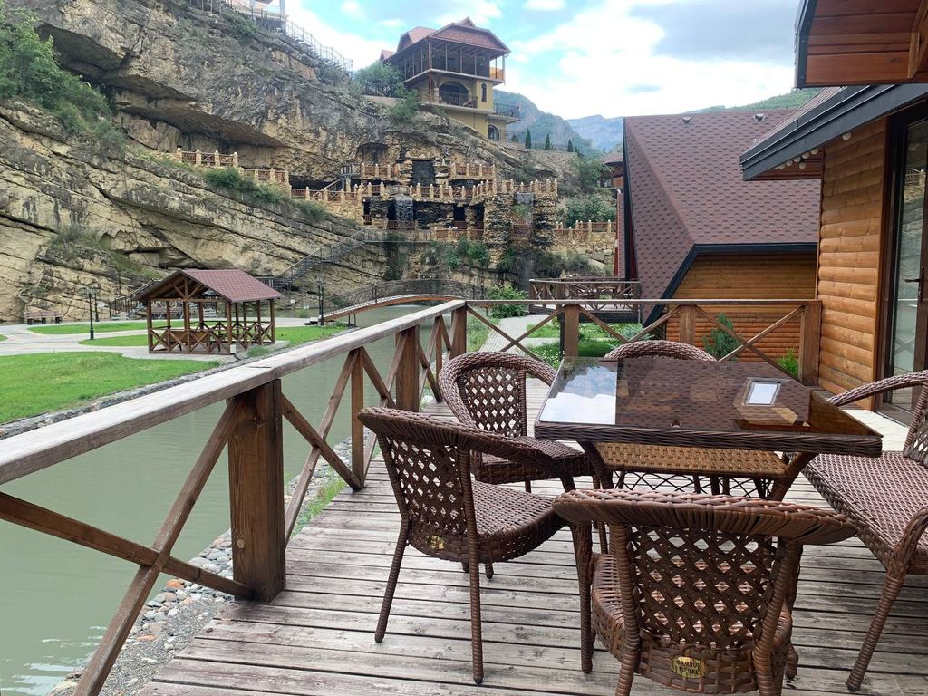 Отель «белые журавли» расположен в живописной местности на берегу реки айварское койсу, окруженной величественными горами. К услугам гостей отеля номера различных категорий, оснащенные всем необходимым для комфортного отдыха: функциональная мебель, современные тв, сплит-системы, холодильники и бесплатный wi-fi доступ в сеть интернет. Из окон номеров открываются завораживающие виды на горы и реку, шум которой создает неповторимую атмосферу. В отеле есть 2 ресторана, в которых вы сможете отведать блюда национальной кухни, или форель и осетра, только что выловленных из искусственного водоема, созданного на территории отеля. Еду из ресторана также можно заказать в беседки, если вы захотите максимального единения с природой. Отель «белые журавли» – идеальное место для тех, кто хочет насладиться тишиной и покоем вдали от городской суеты. Кроме этого, он очень удачно расположен относительно основных локаций горного дагестана, вы сможете их посетить, не потратив много времени на дорогу.