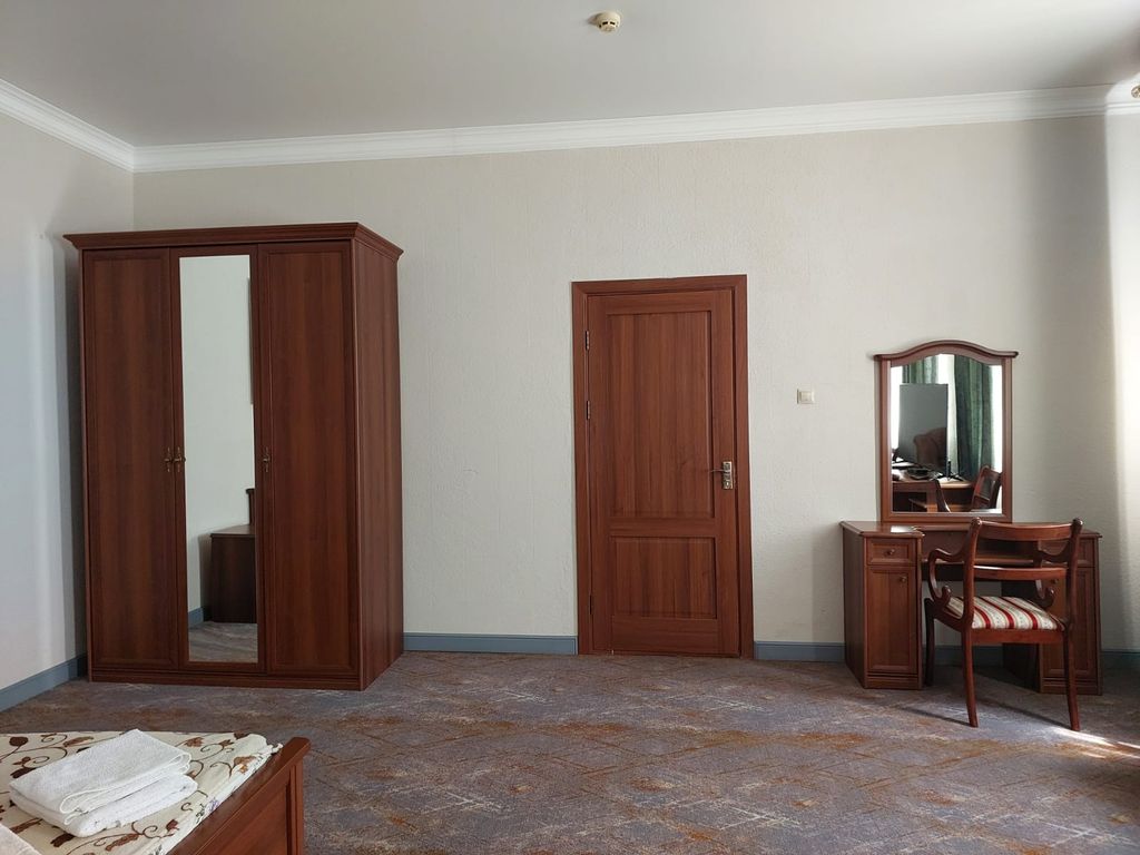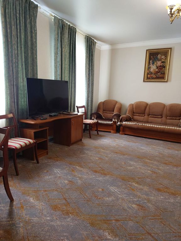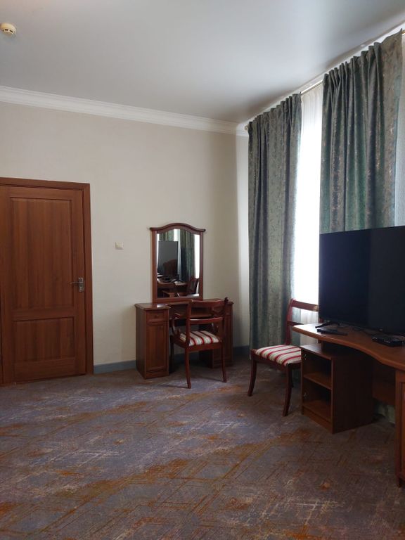 «Уважаемые гости! Мы стараемся создать комфортную и доброжелательную атмосферу для проживания всех наших гостей. Наш отель предлагает своим клиентам настоящее гостеприимство: домашняя обстановка и уют, обновлённые номера, доброжелательный персонал. Гостиница обеспечивает проживающим следующие виды бесплатных услуг : - услуги службы приёма и размещения в т.ч. бронирование (круглосуточно); электрочайник; - вызов такси (круглосуточно); - уборка номеров и смена постельного и полотенец (1 раз в 3 дня); - предоставление гигиенических наборов; - кабельное телевидение; - WI-FI. Платные услуги: 3-х разовое питание, прачечные услуги (стирка, глажка), каршеринг, туристические маршруты по республике. В нашем отеле располагаются: салоны красоты, парфюмерный бутик, магазин вечерних платьев, мини-маркет, барбершоп, ателье, массажные кабинеты, кабинеты лазерной и электрической эпиляции, также предлагаем вам услуги лашмейкера. В нашем кафе вы можете заказать блюда национальной и европейской кухни по до