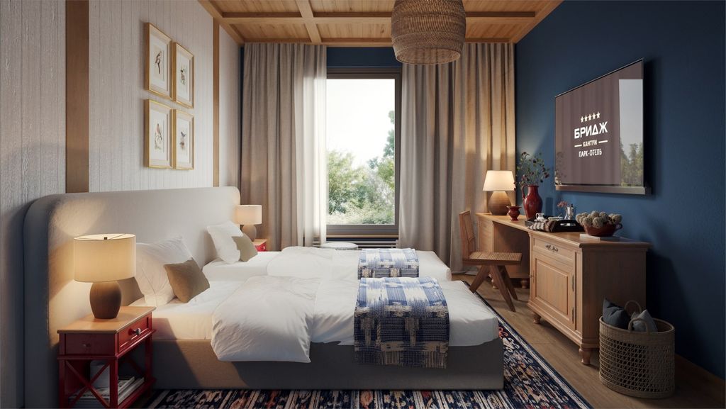 Расположен всего в 50 км от Москвы, в одном из красивейших уголков Подмосковья, в окрестностях Звенигорода. Это место, где можно остановиться в любое время года и в любой день недели — перевести дух и заново посмотреть на себя и свою семью, встретиться со старыми друзьями или приехать одному, чтобы перезагрузиться в атмосфере уюта и заботы. В «Бридж Кантри» едут за вдохновением и простыми радостями, наслаждаться звуками жизни в окружении первозданной природы и набираться сил для своих свершений. Большой номерной фонд, включающий 123 дизайнерских номера, позволяет выбрать идеальное размещение с учетом любых пожеланий наших гостей. И это всегда будет правильный выбор!