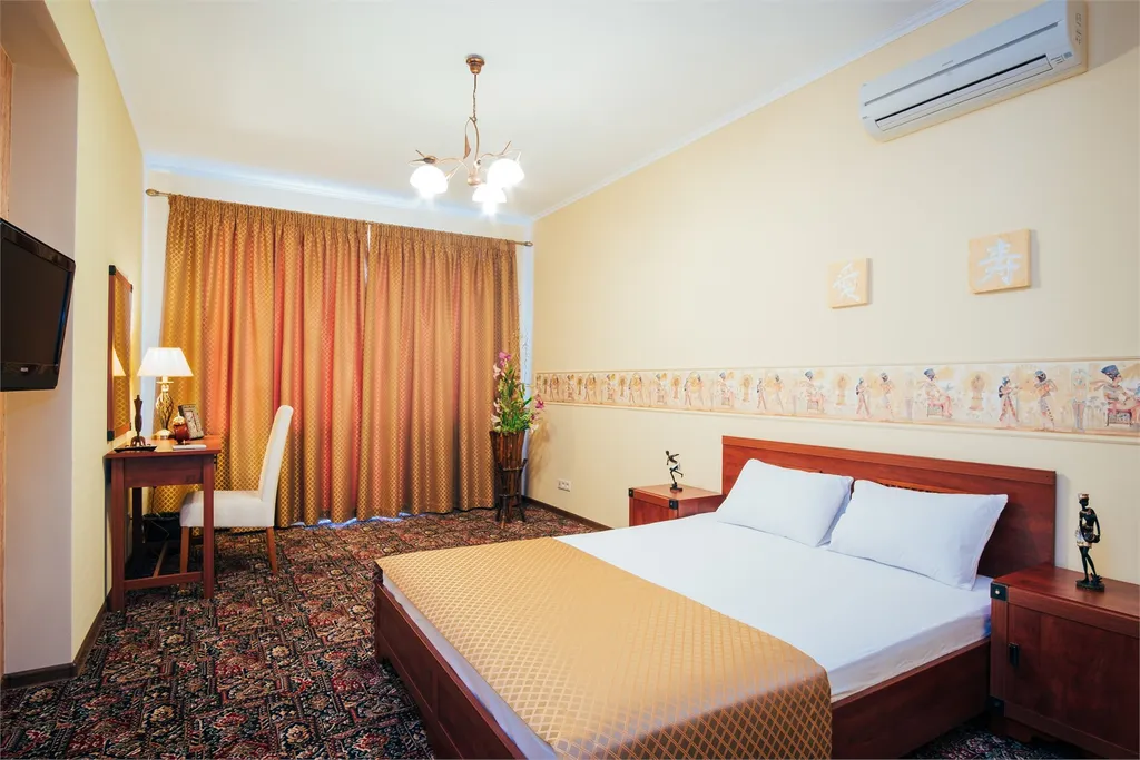 Бесплатные и платные услуги В цену включены завтрак (комплексный), организация регистрации, предоставление документов для отчетности, смена постельного белья, постельное белье для всех гостей, уборка. Можно приобрести за дополнительную плату трансфер от ж/д вокзала, трансфер до ж/д вокзала, трансфер из аэропорта, трансфер в аэропорт, прокат велосипедов, услуги экскурсовода, парковка, пользование стиральной машиной. Один ребёнок до 2 года — можно без отдельного спального места. Гармоничное переплетение интерьерных стилей реализовано в номере осознанно. Те, кто много путешествовал, угадывают здесь мотивы Египта, Персии, Средиземноморья, которые подружились в этом интерьере с русским классицизмом, современными элементами. Дорогая дизайнерская мебель, текстиль, люстры и бра, панно и гравюры, вазы и статуэтки… Во всём чувствуется старание дизайнера. Первый уровень – прихожая с большим шкафом-купе, ванная комната, роскошная гостиная. Шикарный диван раскладывается и может служить дополнител