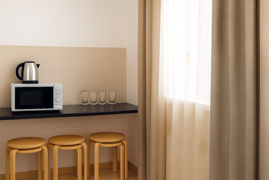 Гостиница «Аккерман» приглашает гостей Уфы насладиться комфортным проживанием по доступной цене. Это идеальный вариант как для деловых поездок, так и для отдыха всей семьёй. Мы предлагаем светлые и чистые номера, рассчитанные на проживание от 1 до 6 гостей. В каждом номере — современный ремонт, качественная мебель и всё необходимое для приятного отдыха. На территории гостиницы имеется бесплатная парковка. Удобства в номерах: - Бесплатные туалетно-косметические принадлежности - Туалет - Ванна или душ - Полотенца и постельное бельё - Плиточный или мраморный пол - Рабочий стол - Телевизор - Москитная сетка - Отопление - Шкаф или гардероб - Вешалка для одежды - Туалетная бумага - Холодильник - Микроволновая печь - Электрический чайник - Набор посуды и столовых приборов - Бесплатный Wi-Fi - Телевизор Размещение с животными запрещено. Курение в номерах запрещено. Заселение — с 14:00. Выезд — до 12:00.