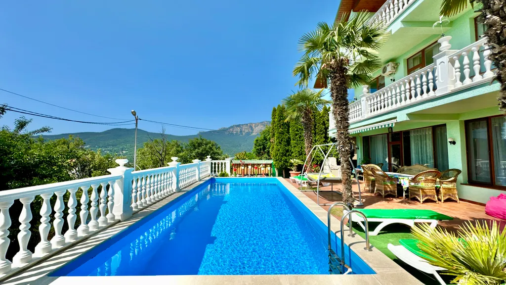 Ceрвис бpoнирования Ялта-Дoм прeдлагaет - Шикарный частный семейный дом, с бассейном, видом на море и чудесным ароматом реликтовых кипарисов. Трехэтажный дом, площадью 238 квадратных метра. Первая спальня с двуспальной кроватью и выходом на балкон. Вторая спальня с раскладным диваном и выходом на балкон с видом на море. Третья спальня с двуспальной кроватью, шкафом и видом на парковую зону. Четвертая спальня с двуспальной кроватью, собственным санузлом с панорамным видом на море. Кухня-гостиная с зоной отдыха с диваном и креслом и кухонная зона со всем необходимым оборудованием для приготовления вкусных блюд. Три санузла, на первом, втором и третьем этажах с душевой кабиной или ванной. Условия проживания: Проживание от 3-х суток в межсезонье Проживание от 5-ти суток в сезон Без животных Вместимость Основных мест – 8 Инфраструктура Бассейн без подогрева Пруд Зона барбекю Зона отдыха выполнена из дерева ручной работы Парковка для 4-х автомобилей Расстояние До моря ≈ 13 минут езды, 6.