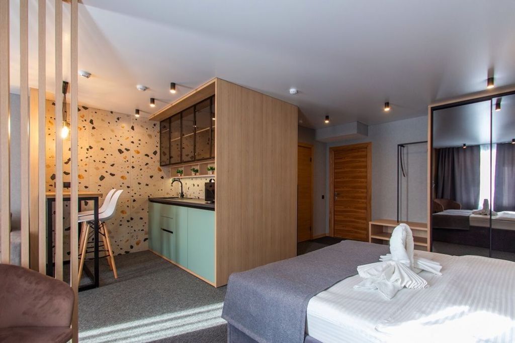 Лучший отель премиум-класса в самом центре города Барнаула! Изысканные номера с авторской отделкой, оборудованы современной кухонной зоной со всеми удобствами. Центр города, в пешей доступности от ТРЦ Galaxy (Галактика). Высокий уровень сервиса для тех, кто ценит комфорт и уют. Различные категории апартаментов. Вкусное и разнообразное питание. Современная мебель и техника создают особую, комфортную атмосферу как для отдыха, так и работы. Возможно удаленное заселение и выезд.