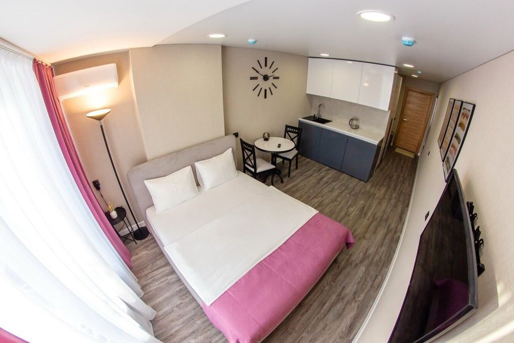 Лучший отель премиум-класса в самом центре города Барнаула! Изысканные номера с авторской отделкой, оборудованы современной кухонной зоной со всеми удобствами. Центр города, в пешей доступности от ТРЦ Galaxy (Галактика). Высокий уровень сервиса для тех, кто ценит комфорт и уют. Различные категории апартаментов. Вкусное и разнообразное питание. Современная мебель и техника создают особую, комфортную атмосферу как для отдыха, так и работы. Возможно удаленное заселение и выезд.