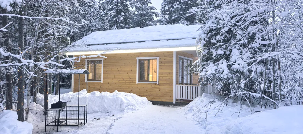 Уютный коттедж с индивидуальной системой отопления и сауной, оборудован небольшой террасой. Коттедж построен из экологически чистого материала, хорошо отапливается, есть горячее водоснабжение. В доме есть ванная комната с душем, сауной и бесплатными туалетно-косметическими принадлежностями. Площадь 42 м2, рассчитан на комфортное размещение до 3 человек. Коттедж оборудован: - Двуспальной кроватью-трансформером (при желании их можно превратить в две односпальные кровати); - Креслом-кроватью; - Журнальным столиком; - Комодом; - Миникухней (включает холодильник, чайник, микроволновую печь, посуду, настенные шкафчики); - Ванной комнатой (включает душевую кабину, санузел, раковину, фен, полотенца); - Сауной с принадлежностями; - Открытой террасой со столиком и стульями. Рядом с коттеджем находится мангальная зона, где есть мангал и стол со скамейками.