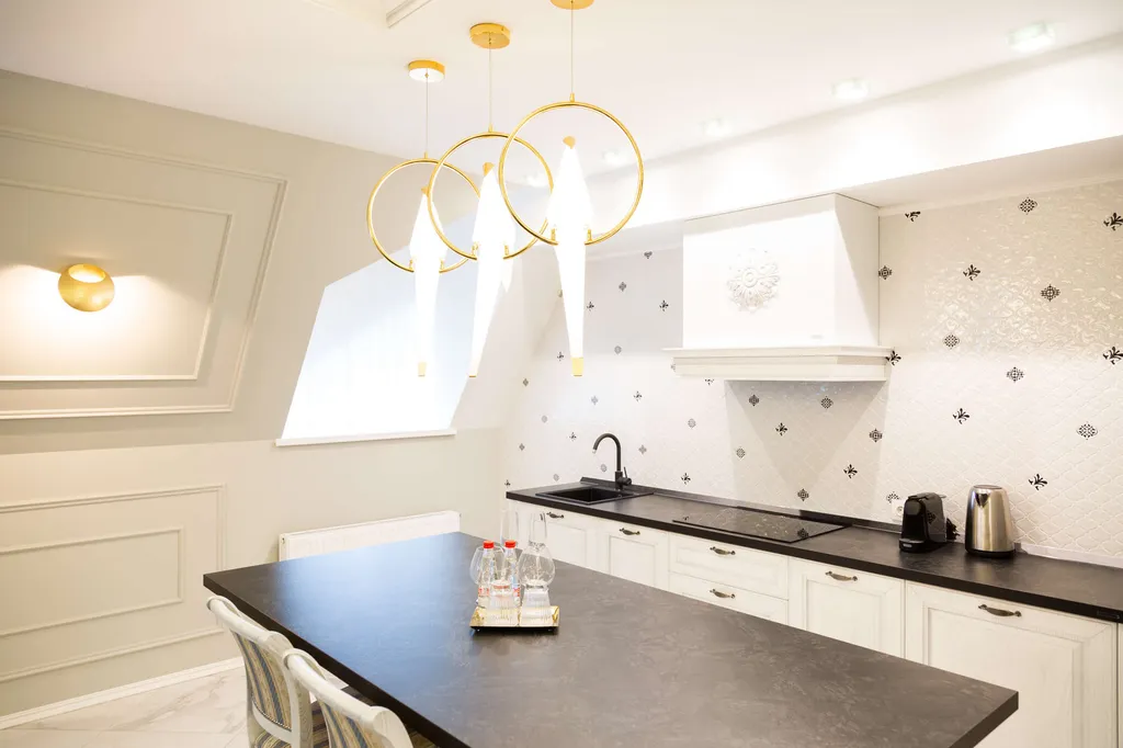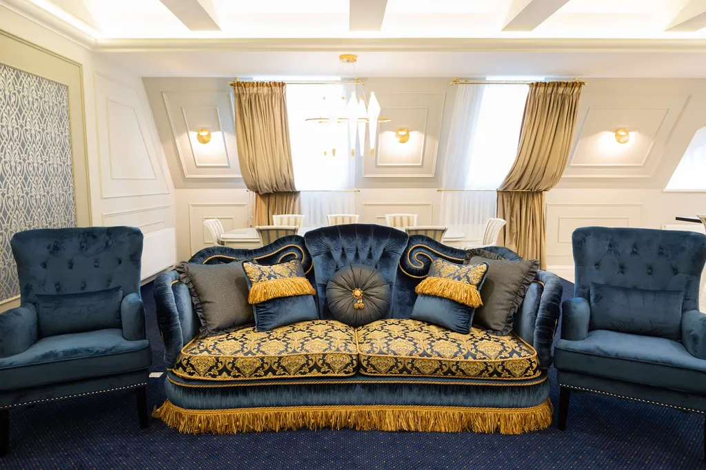 Так важно после долгого трудового дня прийти в просторный номер, приготовить чашку горячего кофе или чая, устроиться поудобнее в гостиной, решить последние рабочие вопросы на сегодня или просто отдохнуть. Именно так мы представляем ваш вечер в номере "Представительский люкс", где интерьер продуман до мелочей: спальня с большой кроватью King size и свежим постельным бельем, просторная гардеробная, гостиная для отдыха и, конечно, небольшой кухонный остров, где вы можете приготовить любимые напитки или ужин. В номере “Представительский люкс” есть: кондиционер, цифровое TV, телефон, сейф, мини-бар, кофе/чай, фен, плотные портьеры, индивидуальный косметический набор. Комплемент от отеля для каждого гостя - фруктовая тарелка!