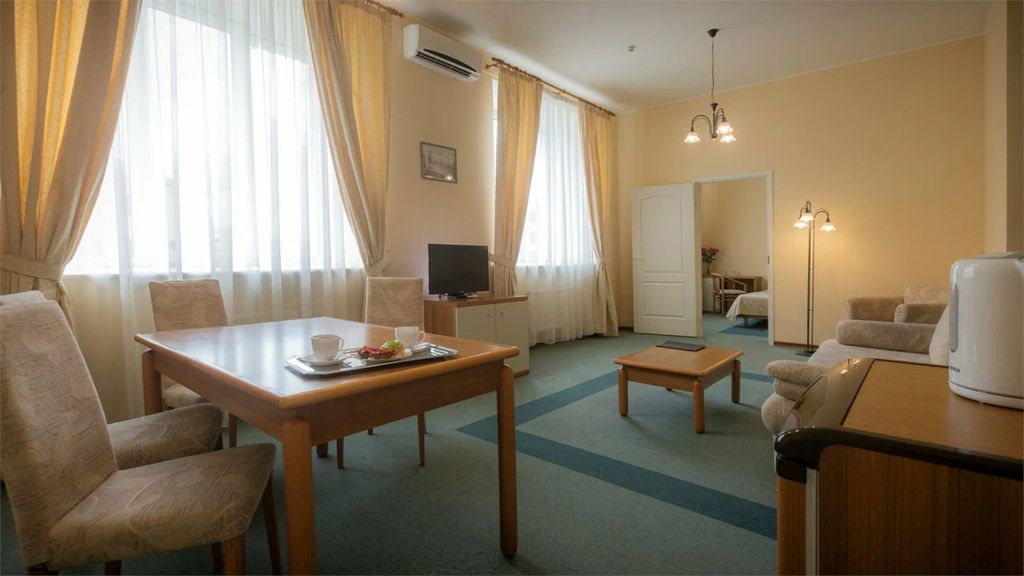 В отеле «Карпинский» предоставляются различные удобства: есть парковка, бесплатный Wi-Fi, круглосуточная стойка регистрации, сейф в номерах, услуга хранения багажа, гладильные услуги, лифт. Персонал говорит на английском и русском языках. В кафе-столовой можно позавтракать и пообедать. Проживающим бесплатно доступен геологический музей. В номерах есть холодильник, чайник, телевизор, кондиционер, бесплатные туалетно-косметические принадлежности, шкаф и комод для белья. Рядом со отелем — остановка общественного транспорта. Неподалёку находятся достопримечательности: Стрелка Васильевского острова с зданием Биржи, Ростральными колоннами и другими памятниками архитектуры; здание Двенадцати коллегий; Меншиковский дворец; лютеранский собор Святого Михаила, в котором проводят органные концерты; Музей Академии художеств; музей современного искусства «Эрарта».