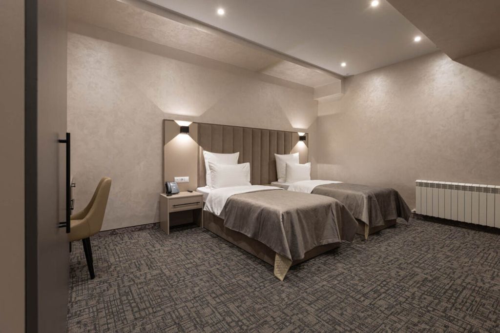 Новый уютный отель предлагает гостям размещение в 18 современных номерах. Отель расположен в живописном районе рядом с парком и развитой инфраструктурой, что делает пребывание максимально удобным и приятным. Для гостей предусмотрена бесплатная охраняемая парковка на территории отеля. В каждом номере Вы найдете всё необходимое для комфортного проживания, включая новую мебель, ортопедические матрасы и современный интерьер – идеальное место для отдыха.