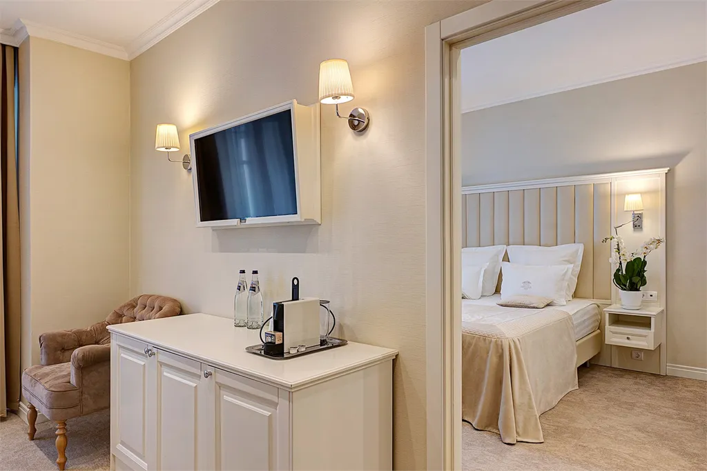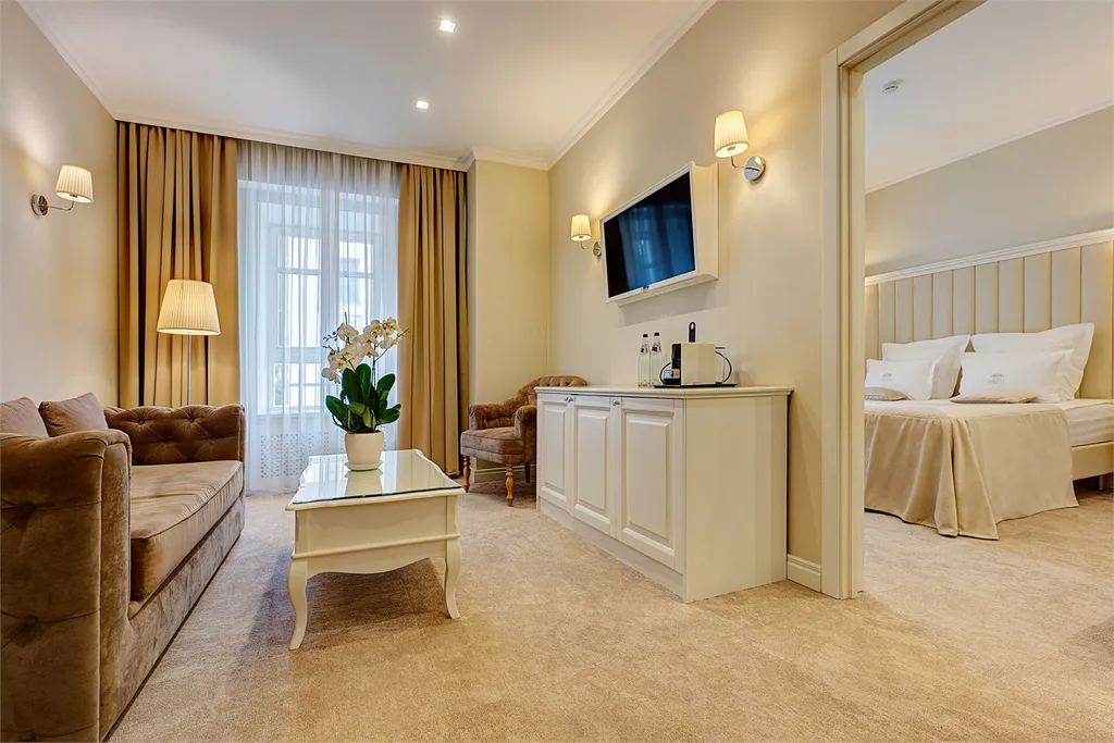 Двухместный номер с возможностью дополнительного размещения. Эти номера гостиницы «Гранд отель Звезда» двухкомнатные, что делает их особенно привлекательными для клиентов с особыми требованиями к комфорту размещения. Великолепная мебель, наличие большого телевизора в каждой комнате, удобные диваны и кресла, дополняющие спальный гарнитур. Большая площадь санузла, расширенный гигиенический пакет для гостя приятно дополняют впечатление от номеров этой категории. Есть дополнительное место - раскладной диван-кровать. Внимание, уважаемые гости! Отель располагает собственной парковкой на внутренней территории. Требуется дополнительное бронирование парковочного места. Стоимость одного парковочного места составляет 500 руб./сутки. Кроме того, имеется муниципальная парковка вдоль фасада здания.
