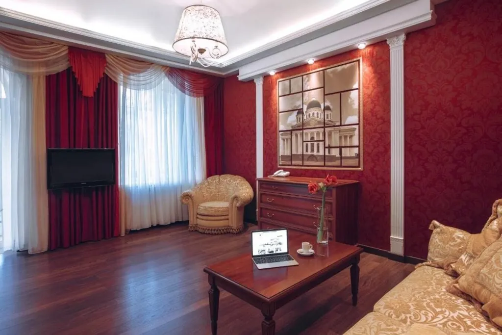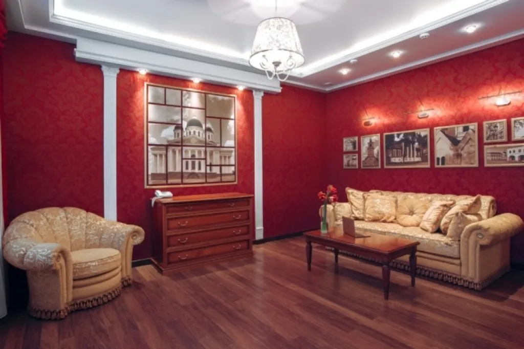 Двухкомнатный номер Люкс - гордость нашей гостиницы. В нём классическая итальянская мебель, тканевые обои, на стенах картины с изображением главных достопримечательностей Арзамаса. При заезде можете добавить комплексный завтрак, который проходит с 7 до 12 часов в ресторане отеля. Стоимость 1200 рублей.