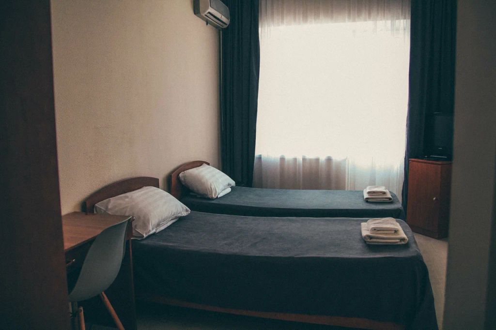 Здание отеля возвышается в спокойном районе, на высоком берегу, вблизи парка ореховая роща, в 550 метрах от берега моря. А в десяти минутах езды на автомобиле расположен центр города с главными развлекательными местами курорта – аквапарками, дельфинарием, парком аттракционов. Рядом с отелем есть продуктовые магазины, кафе и рестораны. Мы предлагаем своим гостям просторные двух и четырёхместные номера, из окон которых, открываются восхитительные виды на море. В номерах имеется необходимый набор мебели, бытовой техники, установлена сплит-система и санузел с ванной. Оборудованный городской галечный пляж находится неподалеку от отеля, там есть все то, что необходимо для хорошего отдыха – навесы, шезлонги, зонтики, туалеты, кабинки для переодевания и несколько работающих кафе.