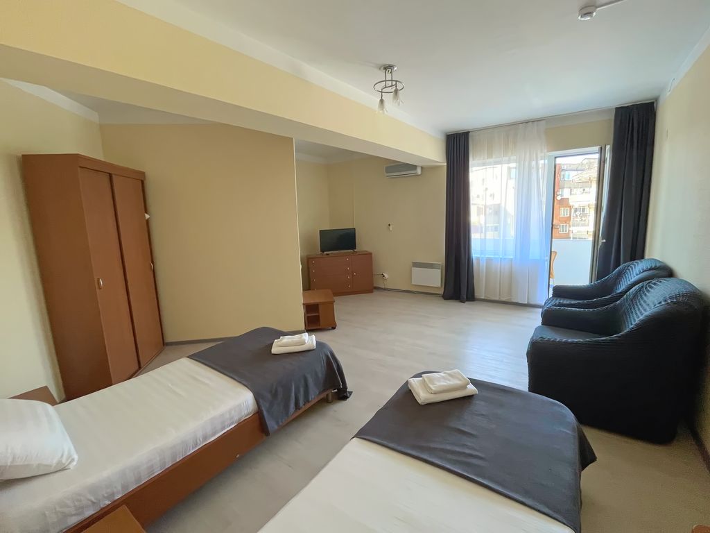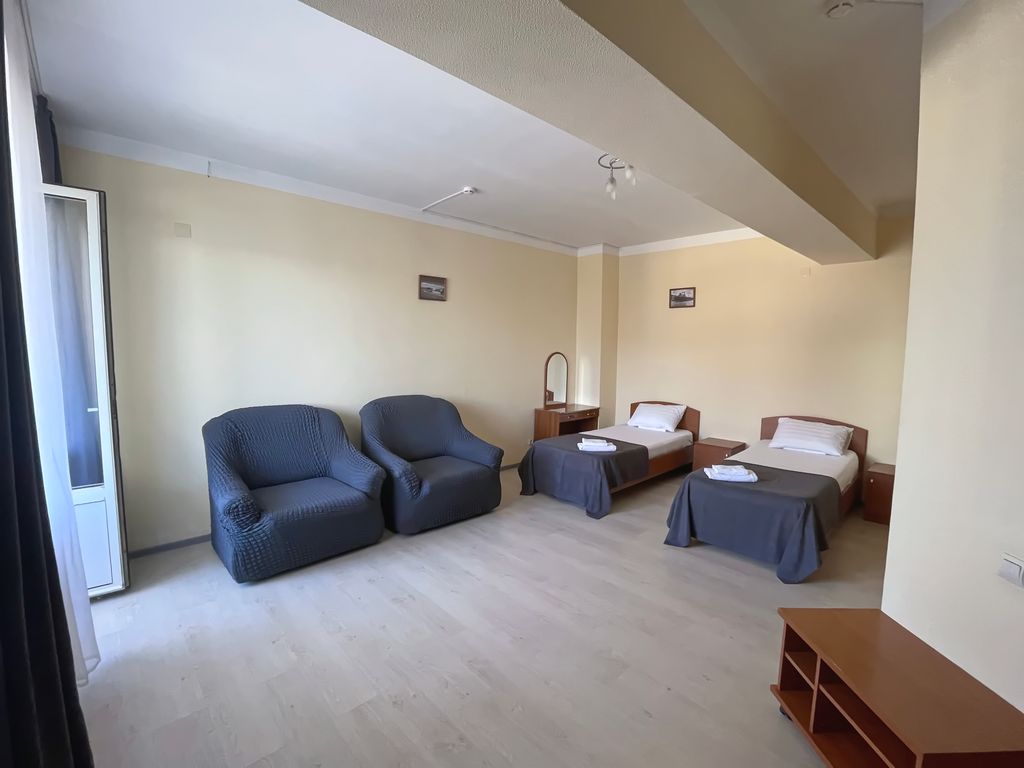 Здание отеля возвышается в спокойном районе, на высоком берегу, вблизи парка ореховая роща, в 550 метрах от берега моря. А в десяти минутах езды на автомобиле расположен центр города с главными развлекательными местами курорта – аквапарками, дельфинарием, парком аттракционов. Рядом с отелем есть продуктовые магазины, кафе и рестораны. Мы предлагаем своим гостям просторные двух и четырёхместные номера, из окон которых, открываются восхитительные виды на море. В номерах имеется необходимый набор мебели, бытовой техники, установлена сплит-система и санузел с ванной. Оборудованный городской галечный пляж находится неподалеку от отеля, там есть все то, что необходимо для хорошего отдыха – навесы, шезлонги, зонтики, туалеты, кабинки для переодевания и несколько работающих кафе.