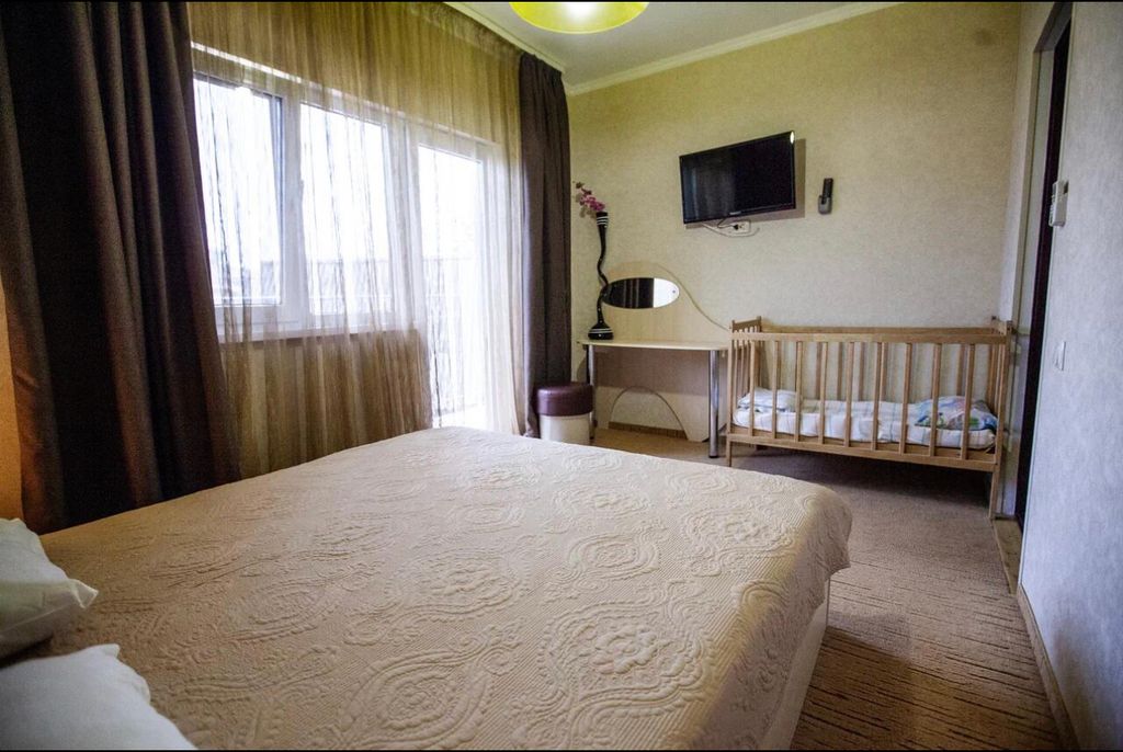 Гостиница «Ассоль» притаилась в тихом, зелёном и уютном секторе базы отдыха «Прибой» почти на самом берегу Чёрного моря (в 40 м от пляжа). Год основания – 2015. Вас ждут новые уютные номера со всеми удобствами, дизайн и оснащение которых мы пытались продумать до мелочей, чтобы Ваш отдых максимально комфортным. А также благоустроенный пляж, ласковое море и великолепные закаты… На территории гостевого дома имеются уютные беседки с мангалом. Расстояние до пляжа - 40 м, до самого крупного аквапарка Крыма "Банановая республика" - 2 км, до г. Евпатория - 8 км, до г. Саки - 7 км, до аэропорта г. Симферополя - 35 км. Наша миссия: «Мы созданы, чтобы подобно легендарному кораблю «Алые паруса» вести Вас по волнам комфорта в атмосфере добра и уюта, открывая сказочные уголки удивительного и лучезарного Крыма! Мы хотим подарить Вам нашу любовь, радушие и… немножечко чуда! Мы стремимся предоставлять высокий уровень обслуживания в сочетании с умеренными ценами».