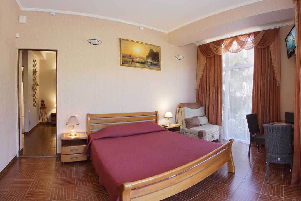 Вилла «Аннигора» в Алуште расположена в 300 м от моря, в тихом и спокойном уголке, где красивая природа и чистый воздух. Отель находится у подножья горы Кастель, вблизи виноградников и густой растительности. Вниманию посетителей представляются уютные номера различных категорий: одноместные, двухместные и семейные. Каждый номер оборудован комфортными спальными местами с ортопедическими матрасами, холодильником, телевизором, кондиционером, электрочайником, санузлом и сейфом. Питание предоставляется в местных кафе, барах и ресторанах. Также на территории виллы имеется общая кухня, где можно самостоятельно приготовить пищу. Во дворе есть терраса с мангалом, что позволяет пожарить вкусный и ароматный шашлык. В номерах и на всей территории мини-отеля есть бесплатный Wi-Fi. Предоставляются услуги трансферта на автовокзал или аэропорт, организации экскурсий по Крыму и аренды транспорта. Недалеко от виллы расположен комплекс-аквапарк «Миндальная роща», боулинг-клуб, набережная, караоке-бар, гал