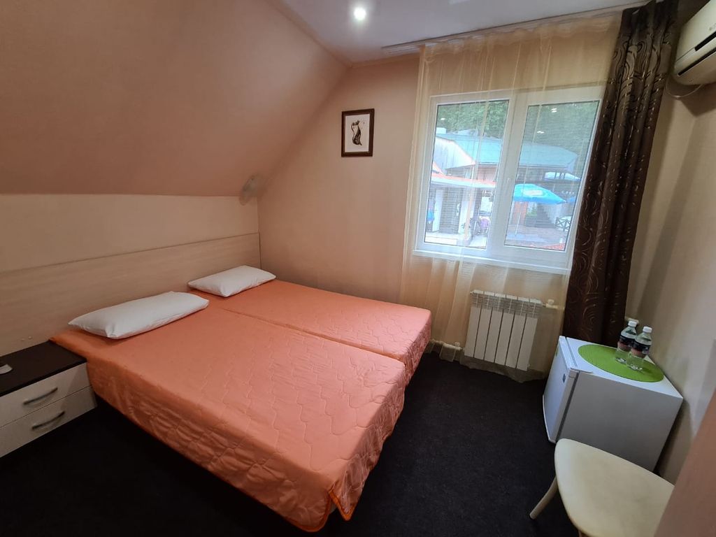 На территории отеля «Оранжевое Солнце» вы найдете всё необходимое для отдыха и даже больше! Наш отель расположился на высоте 70 метров над уровнем моря, с трех сторон окружен лесным массивом. Тишина и прохлада в тени вековых дубов и потрясающий панорамный вид на море и утром за чашечкой кофе, можно наблюдать за дельфинами. В нашем отеле очень тихо, а утром можно проснуться под пение птиц. Мы находимся в дали от трассы, жд дороги и тусовочной набережной. Не смотря на уединенное расположение, до пляжа всего 750 метров по тенистой аллее, а до Центрального парка развлечений всего 1,2 км. Наши цены оптимально сочетаются с уровнем комфортного отдыха и предоставляемых услуг. Номерной фонд состоит из 14 номеров оснащенных всем необходимым для комфортного отдыха всей семьёй: Санузел (душ, туалет, раковина) в номер Сплит-система тепло-холод, LED-телевизоры, Мини-холодильник, Фен, Сейф Ортопедические матрацы, на окнах москитные сетки, столик, стулья, шкаф, мебель на балконе (для номеров с балко