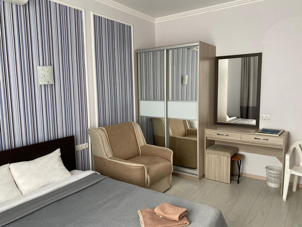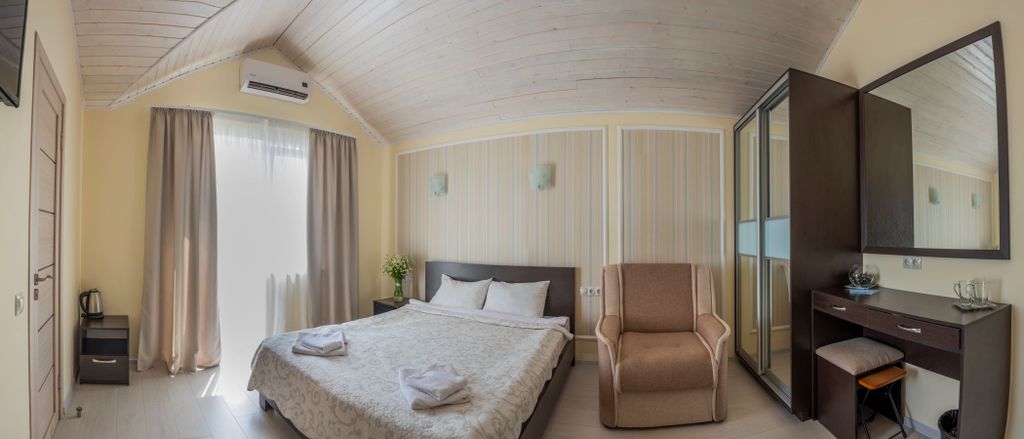 Отель "Вилла Мира" расположен в тихом курортном районе Алушты. Море и пляж находятся всего в нескольких минутах ходьбы. В 500 метрах от нас есть продуктовый магазин. До городской набережной Алушты можно доехать на электрокарах. У отеля есть собственная крытая стоянка для машин, расположенная непосредственно возле отеля и находящаяся под видеонаблюдением. На крыше второго корпуса отеля находится зона отдыха + смотровая площадка. Там Вы сможете отдохнуть в гамаках, позагорать на шезлонгах, посмотреть телевизор, поиграть в настольный теннис. Также на территории зоны отдыха есть бар и мангал, где для Вас могут пожарить вкуснейшее мясо. Ваши дети тоже останутся довольны, так как в их распоряжении будет детский уголок и PlayStation4. И все это с видом на море. В нашем отеле есть кафе, в котором Вы сможете всегда вкусно и недорого покушать. Во всех номерах есть душ, туалет, электрический чайник, сейф, фен, холодильник, плоский телевизор, кондиционер, набор личной посуды. Из некоторы