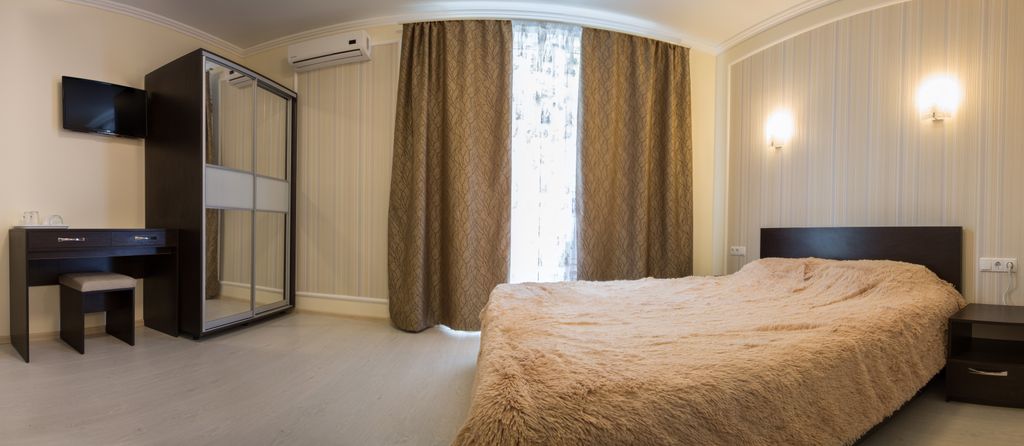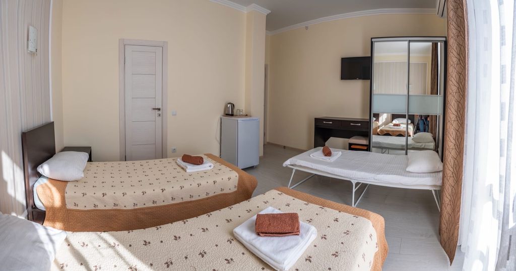 Отель "Вилла Мира" расположен в тихом курортном районе Алушты. Море и пляж находятся всего в нескольких минутах ходьбы. В 500 метрах от нас есть продуктовый магазин. До городской набережной Алушты можно доехать на электрокарах. У отеля есть собственная крытая стоянка для машин, расположенная непосредственно возле отеля и находящаяся под видеонаблюдением. На крыше второго корпуса отеля находится зона отдыха + смотровая площадка. Там Вы сможете отдохнуть в гамаках, позагорать на шезлонгах, посмотреть телевизор, поиграть в настольный теннис. Также на территории зоны отдыха есть бар и мангал, где для Вас могут пожарить вкуснейшее мясо. Ваши дети тоже останутся довольны, так как в их распоряжении будет детский уголок и PlayStation4. И все это с видом на море. В нашем отеле есть кафе, в котором Вы сможете всегда вкусно и недорого покушать. Во всех номерах есть душ, туалет, электрический чайник, сейф, фен, холодильник, плоский телевизор, кондиционер, набор личной посуды. Из некоторы