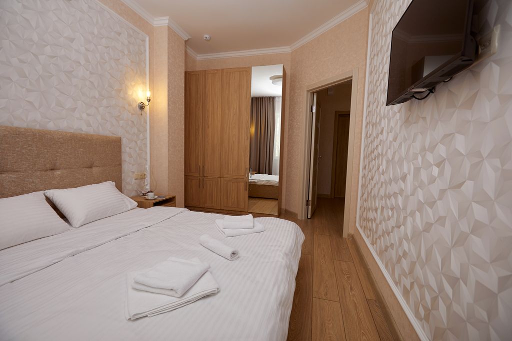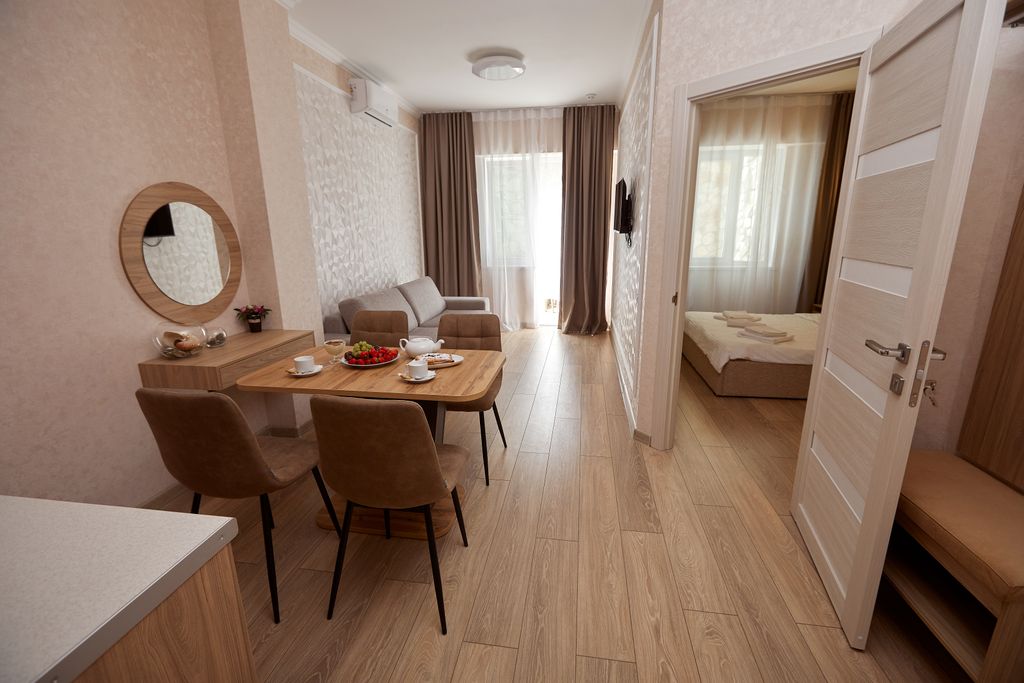 Отель "Вилла Мира" расположен в тихом курортном районе Алушты. Море и пляж находятся всего в нескольких минутах ходьбы. В 500 метрах от нас есть продуктовый магазин. До городской набережной Алушты можно доехать на электрокарах. У отеля есть собственная крытая стоянка для машин, расположенная непосредственно возле отеля и находящаяся под видеонаблюдением. На крыше второго корпуса отеля находится зона отдыха + смотровая площадка. Там Вы сможете отдохнуть в гамаках, позагорать на шезлонгах, посмотреть телевизор, поиграть в настольный теннис. Также на территории зоны отдыха есть бар и мангал, где для Вас могут пожарить вкуснейшее мясо. Ваши дети тоже останутся довольны, так как в их распоряжении будет детский уголок и PlayStation4. И все это с видом на море. В нашем отеле есть кафе, в котором Вы сможете всегда вкусно и недорого покушать. Во всех номерах есть душ, туалет, электрический чайник, сейф, фен, холодильник, плоский телевизор, кондиционер, набор личной посуды. Из некоторы